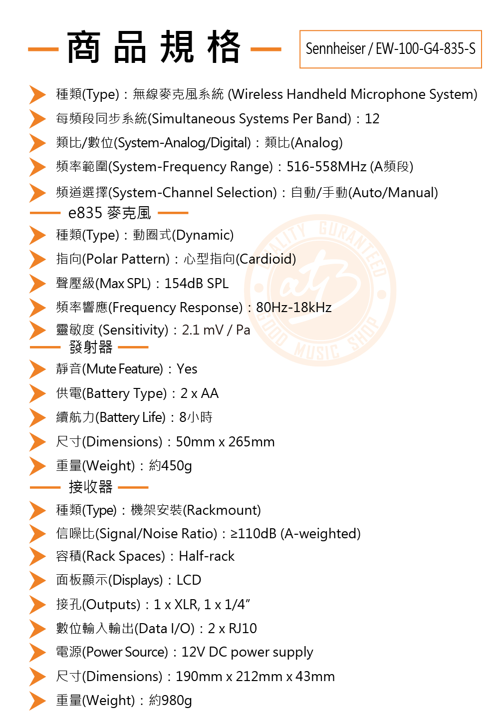 ◆ E835麥克風音色溫暖平穩,聲音靈敏,專為現場收音設計