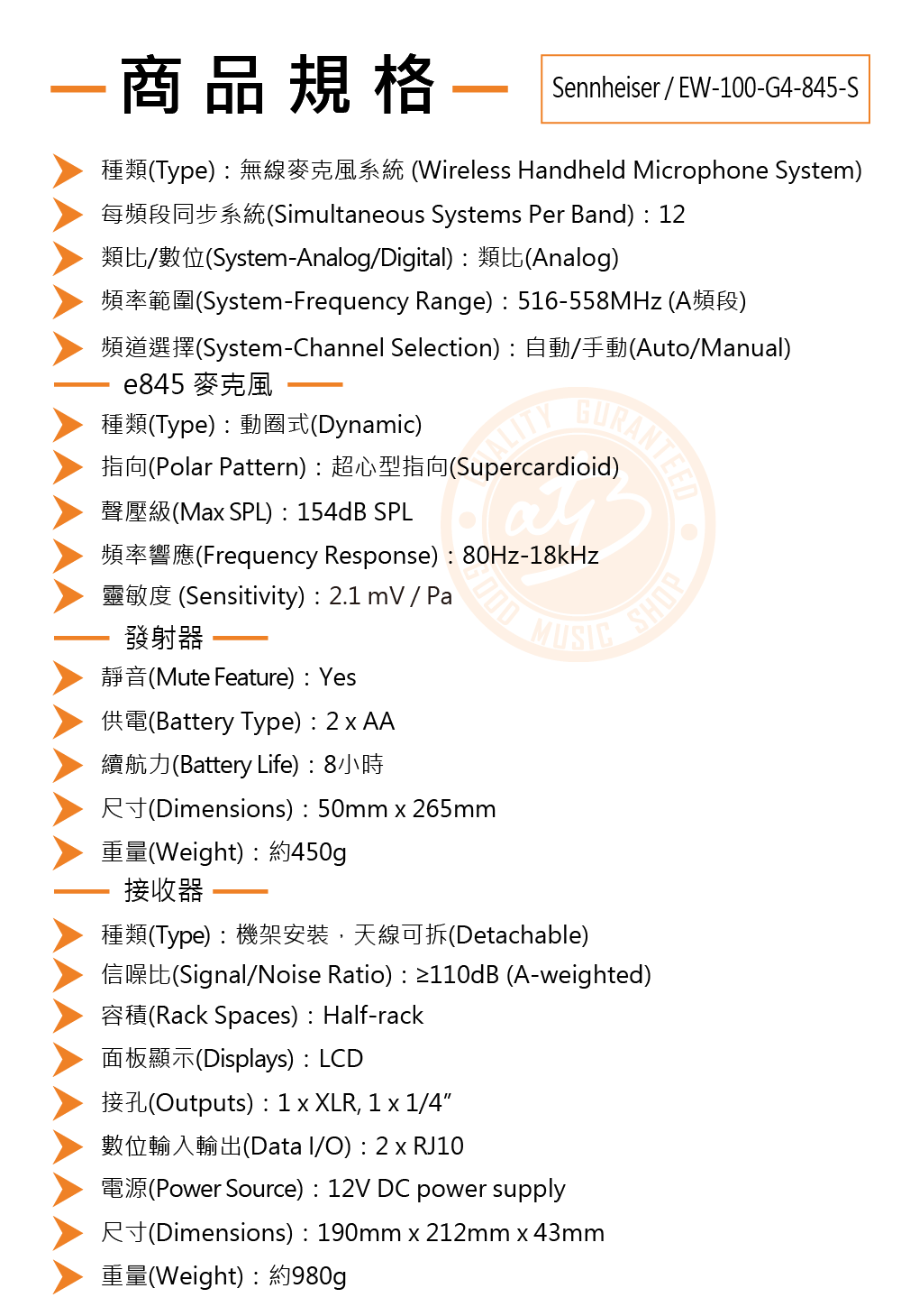 ◆ E845麥克風投射清晰平穩人聲,聲音靈敏,專為現場收音設計