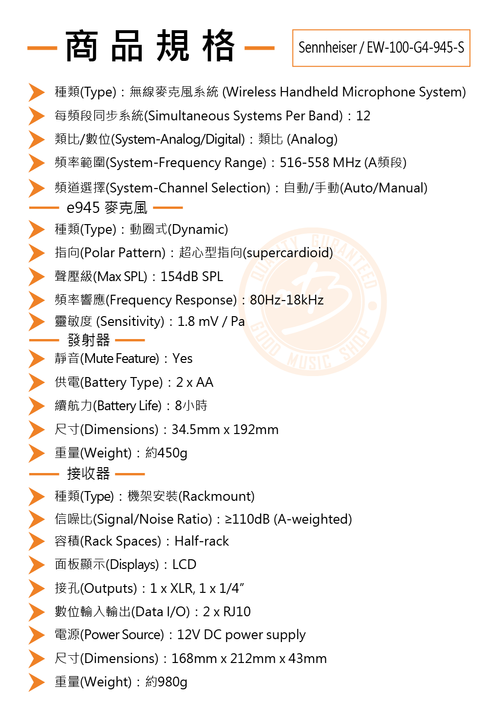 ◆ 超心型指向動圈式麥克風,頻率響應80-18kHz