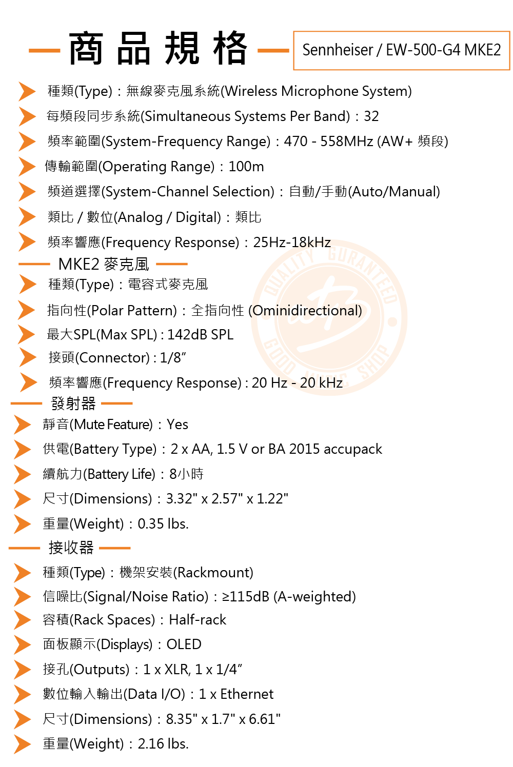 ◆ 領夾式全指向MKE2電容式麥克風,頻率響應20 Hz-20 kHz