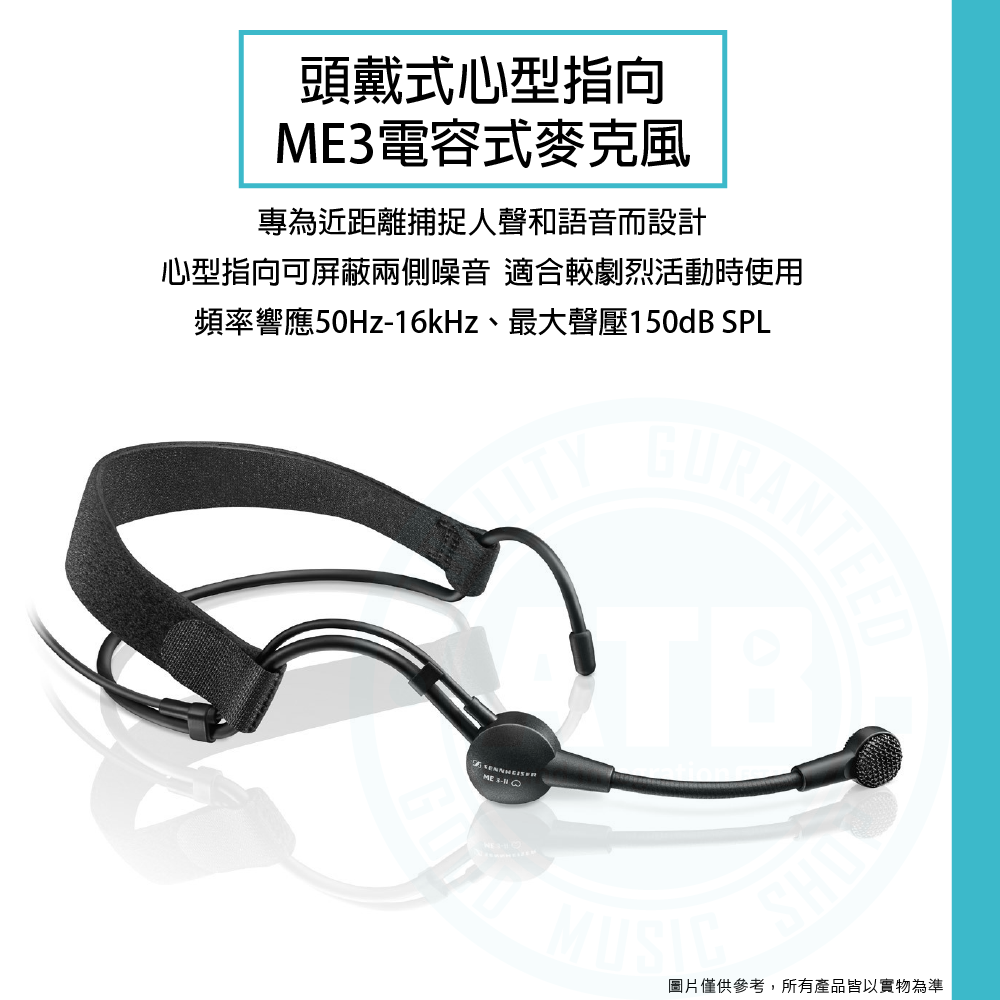 ◆ ME3頭戴式心型指向電容麥克風,可屏蔽兩側噪音