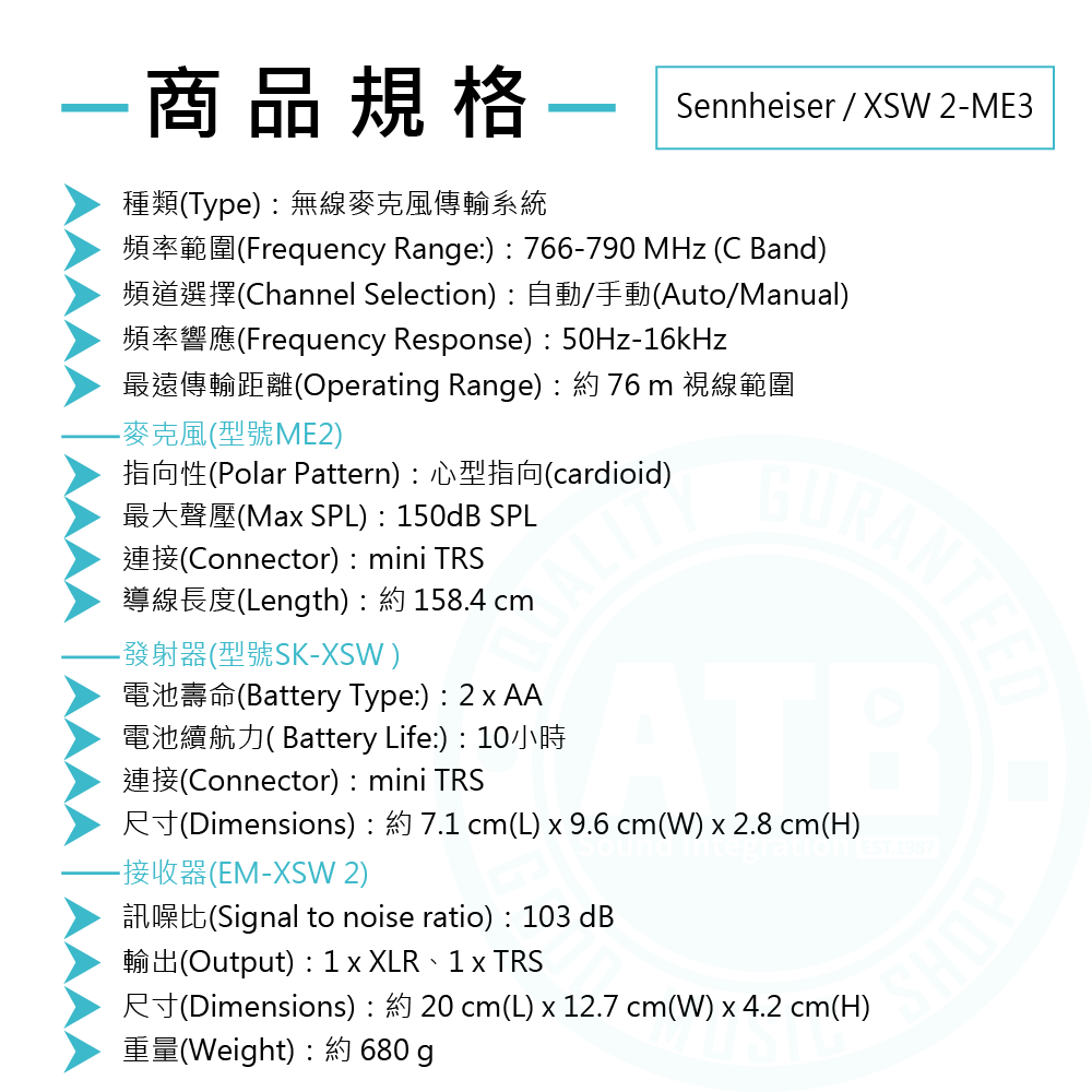 ◆ 含無線接收器 x1、無線發射器 x1、頭戴式麥克風 x1
