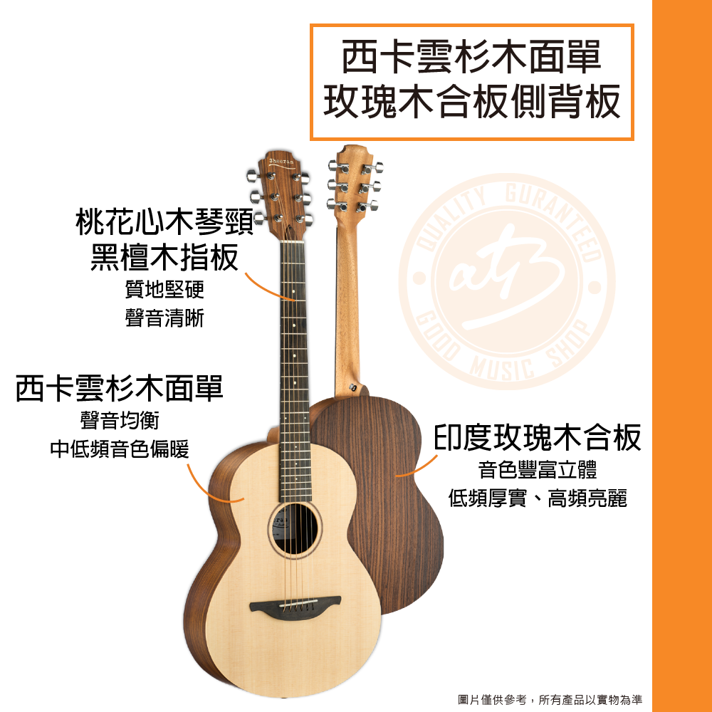 ◆西卡雲杉木面單 印度玫瑰木合板側背板 桃花心木琴頸 黑檀木指板