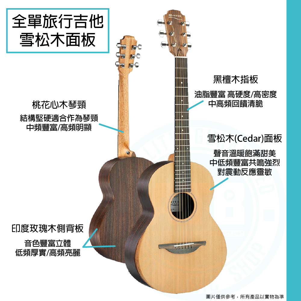 ◆全單/雪松木面板&玫瑰木側背板,聲音溫暖飽滿,音色豐富立體