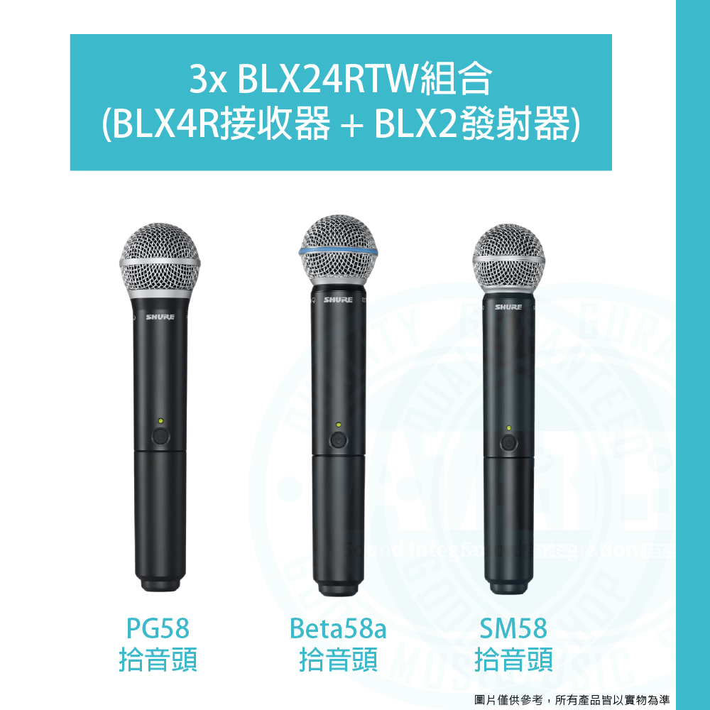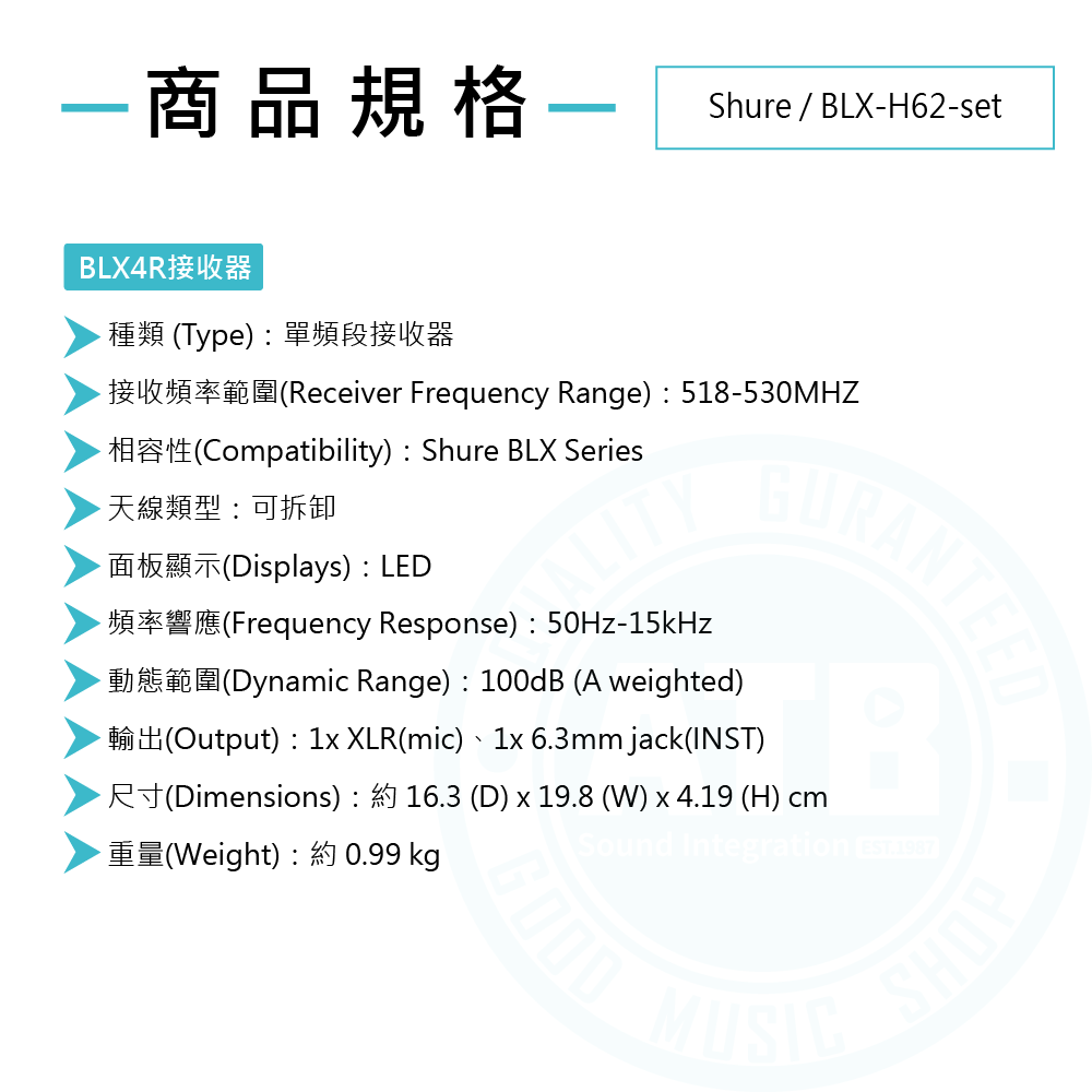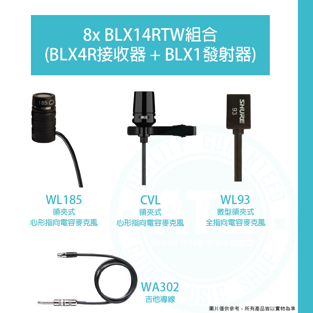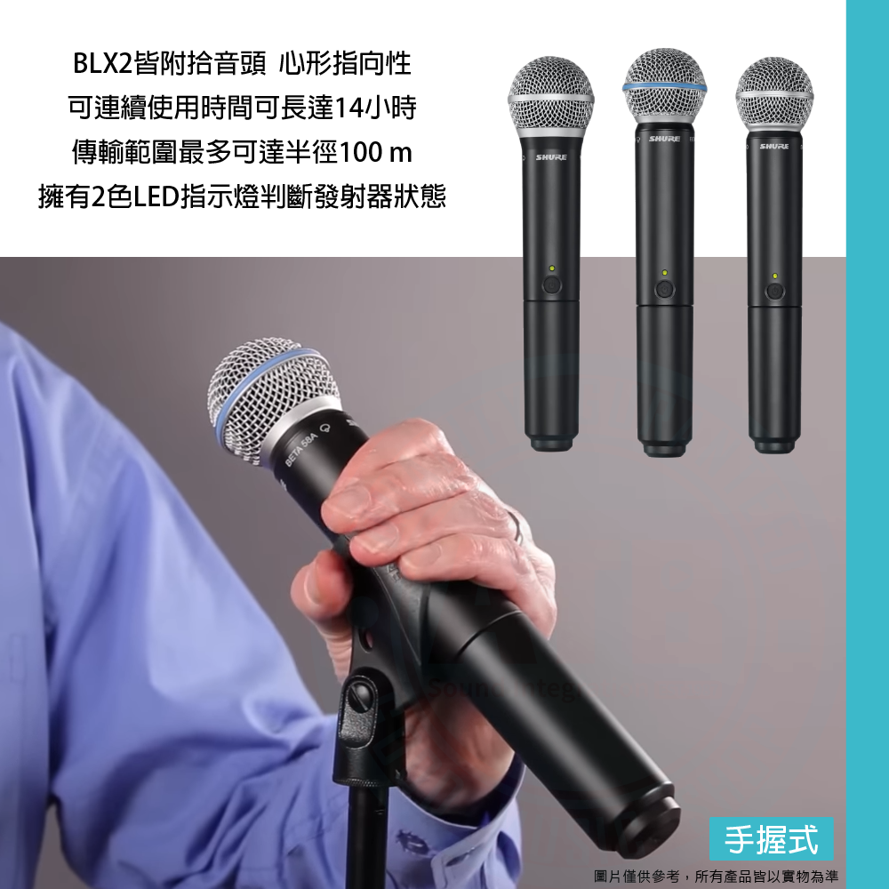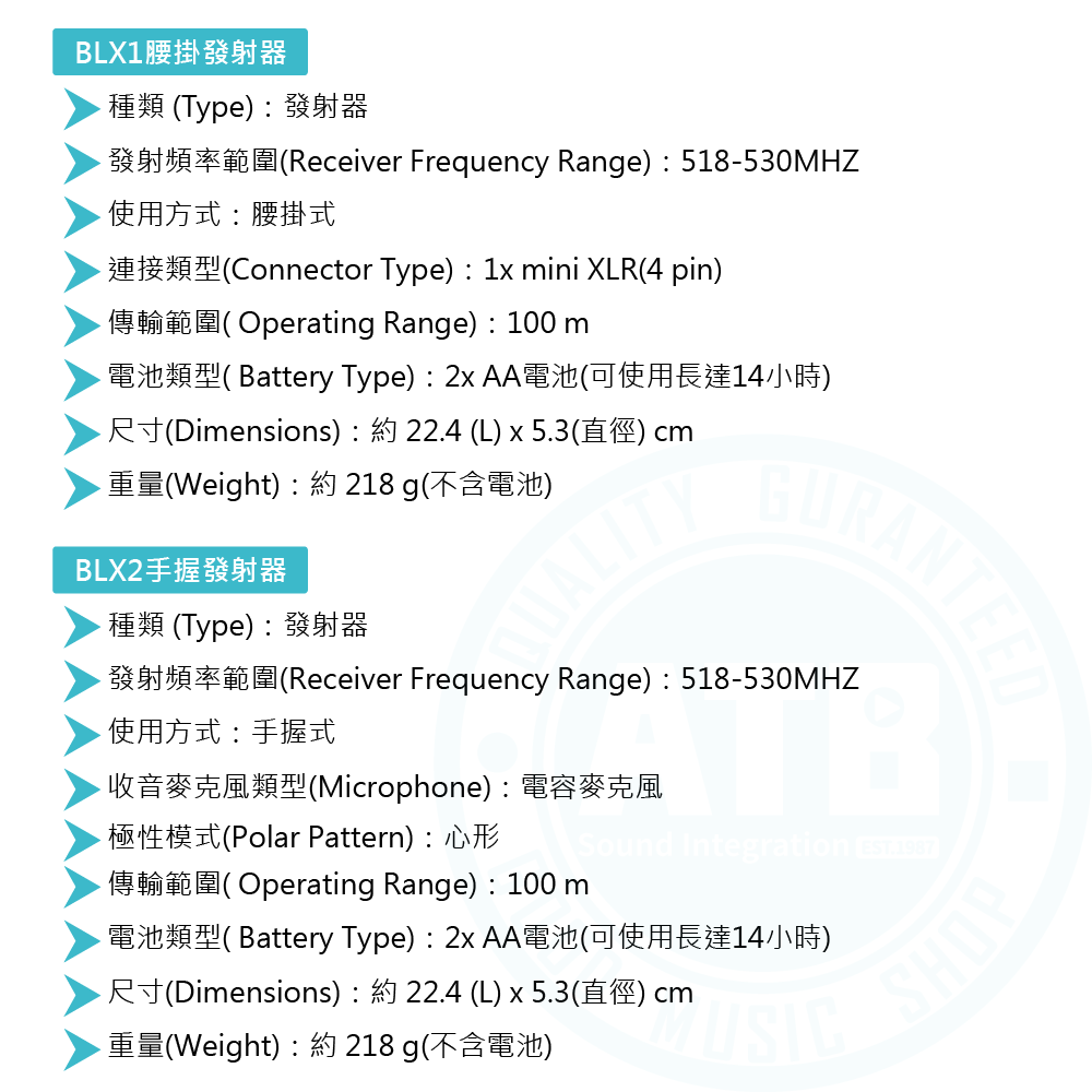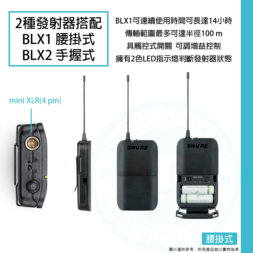 ◆ 配備BLX4R單頻道接收器、BLX1腰掛式/BLX2手握式發射器