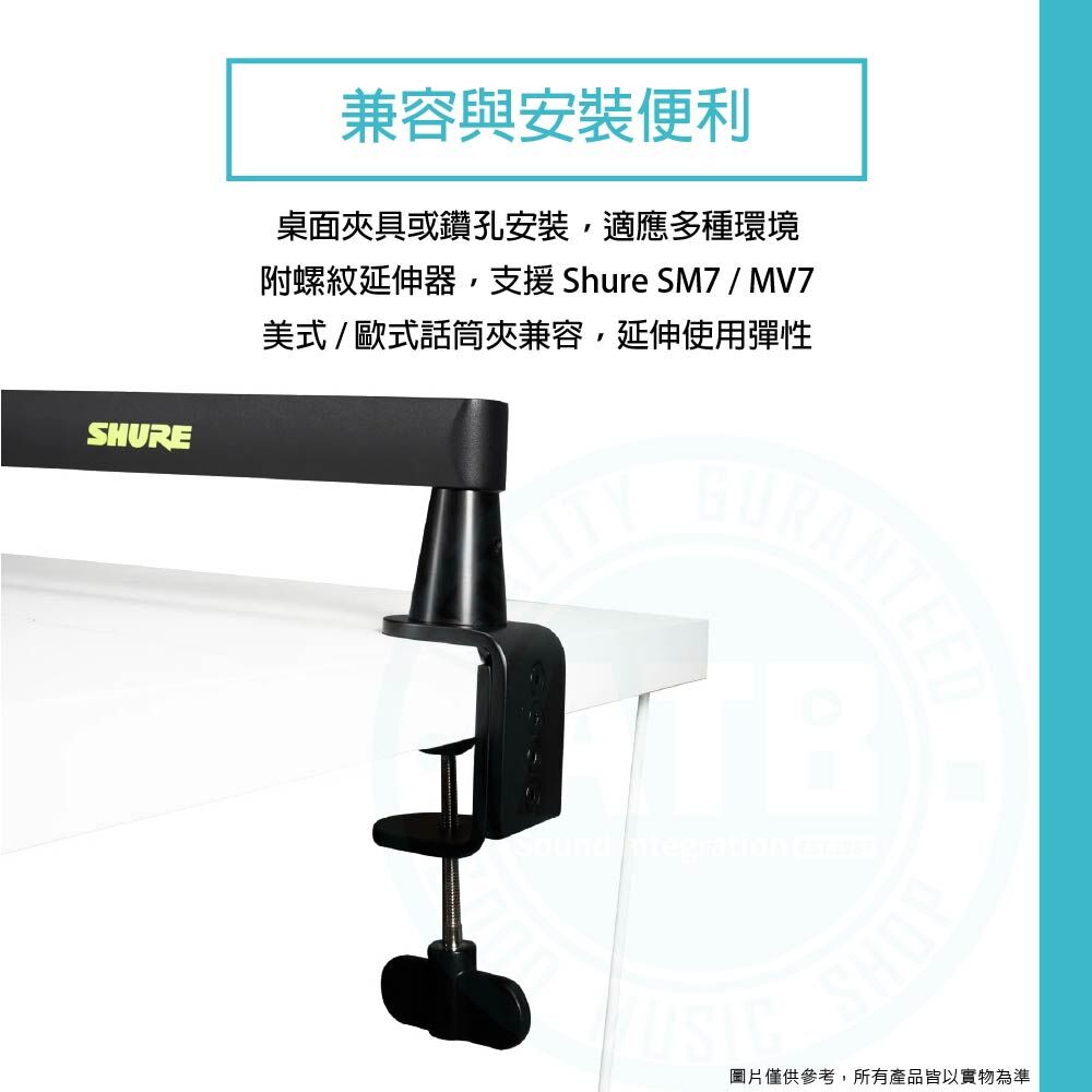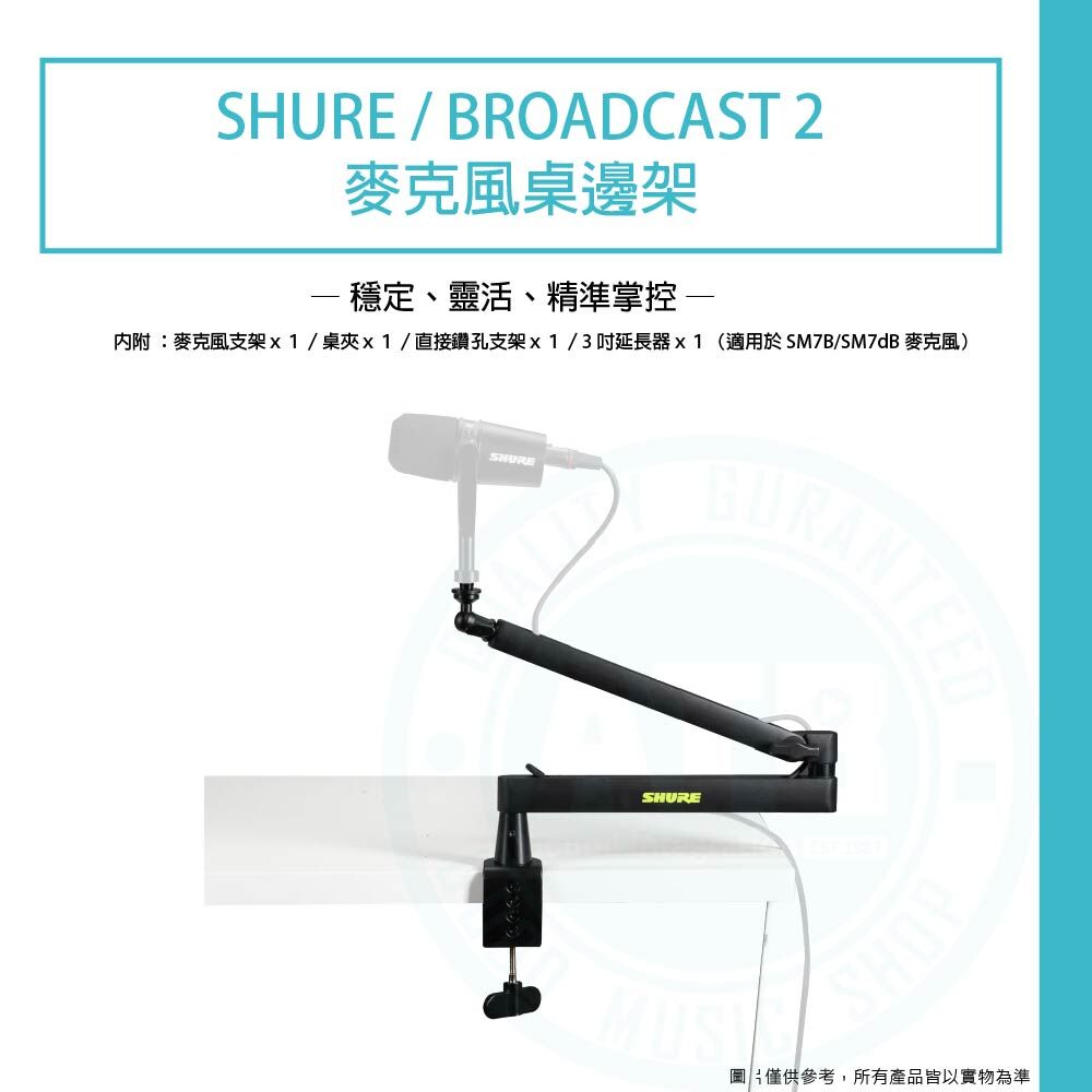 ◆ 麥克風支架x1/ 桌夾固定座x1/ 桌面鑽孔直裝座x1/延長桿 1 × 3 吋(適用於 SM7B/SM7dB 麥克風)