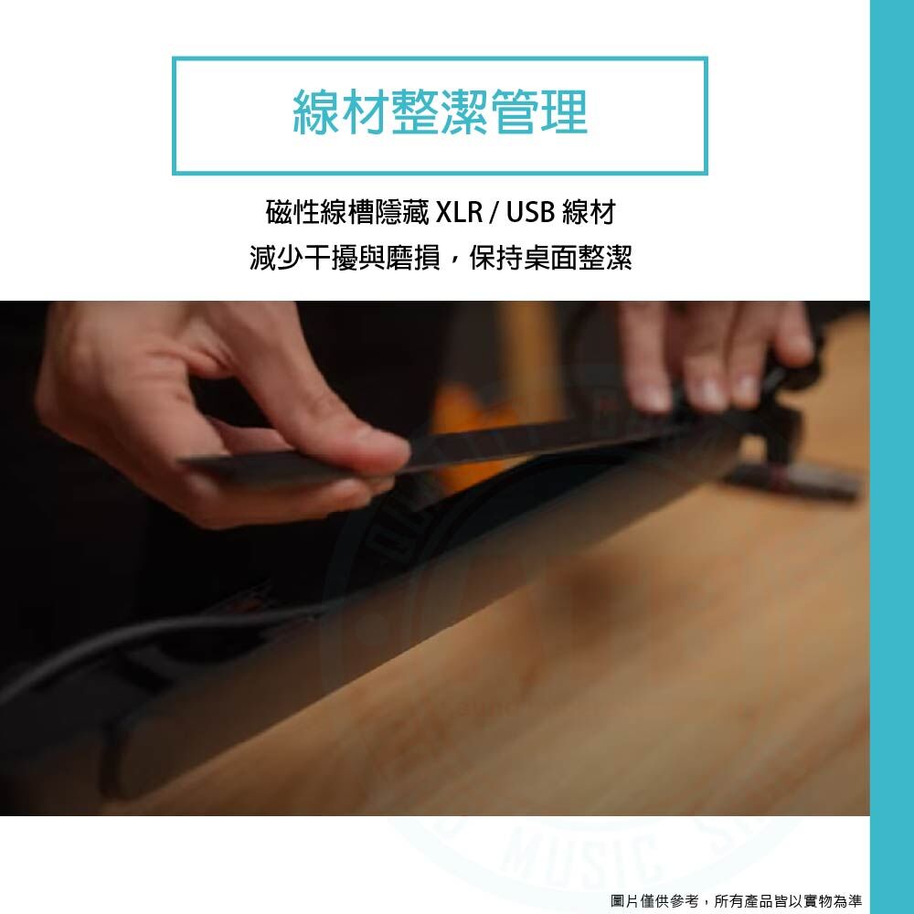 ◆磁吸式理線槽,方便整理 XLR 或 USB 線材