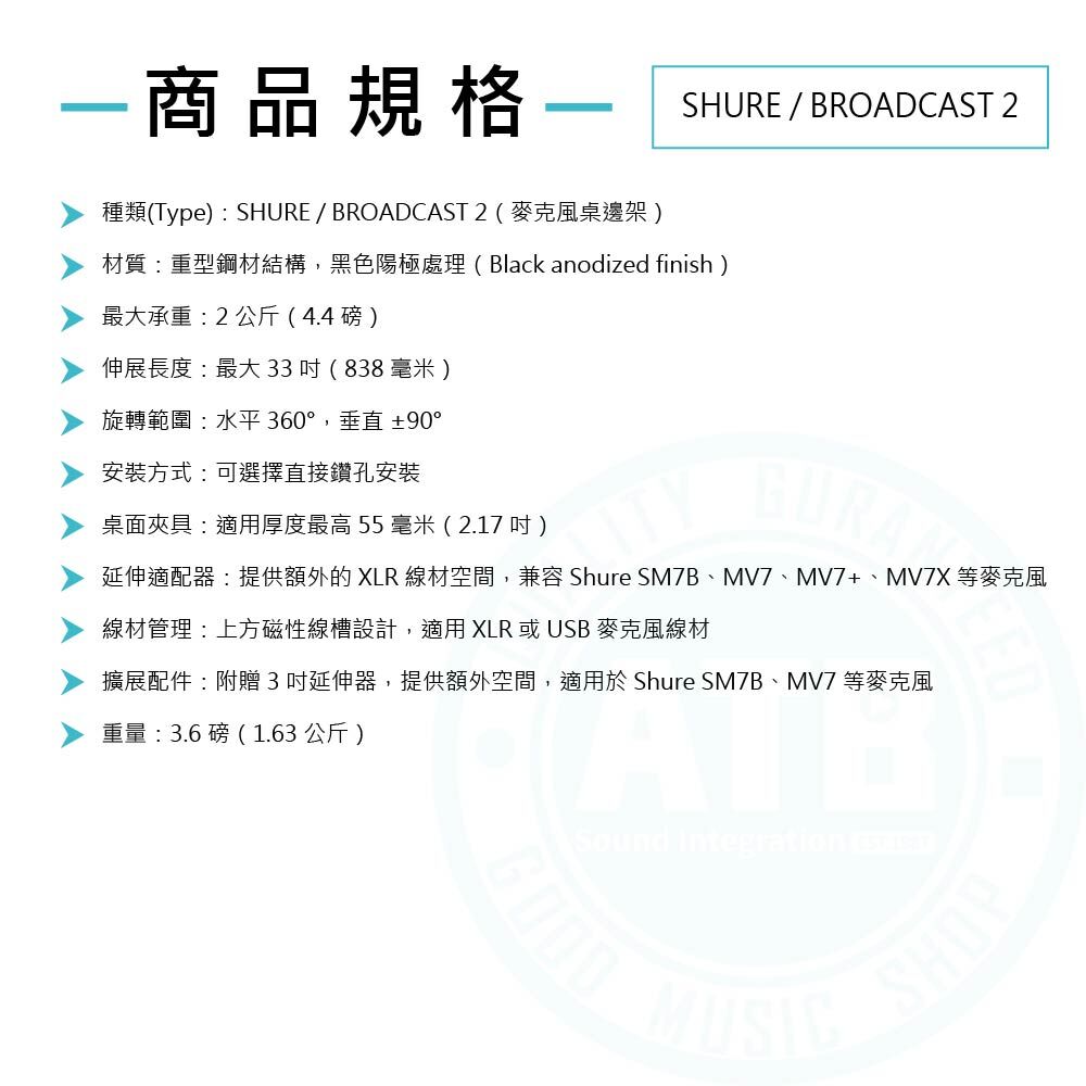◆適用 Shure 與第三方品牌麥克風