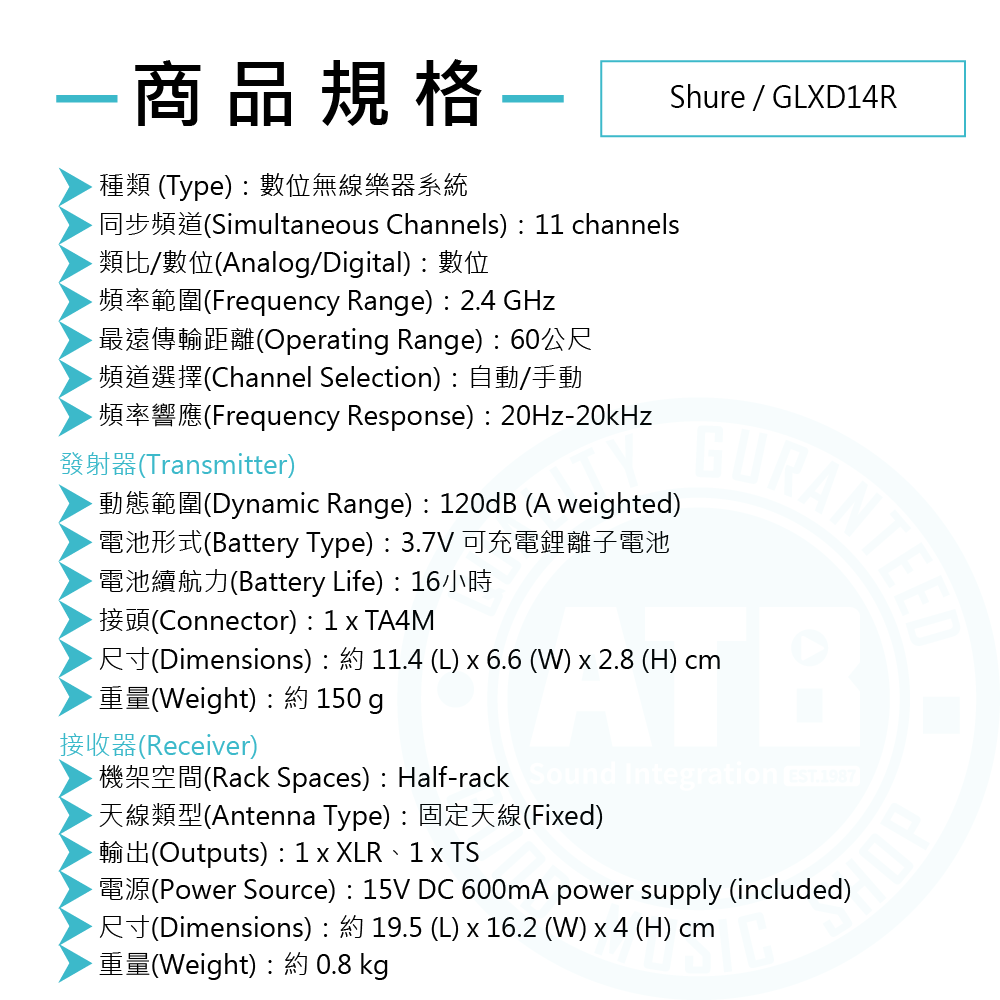 ◆ 數位無線麥克風系統,適用Sax、演講、Podacast、劇場演出