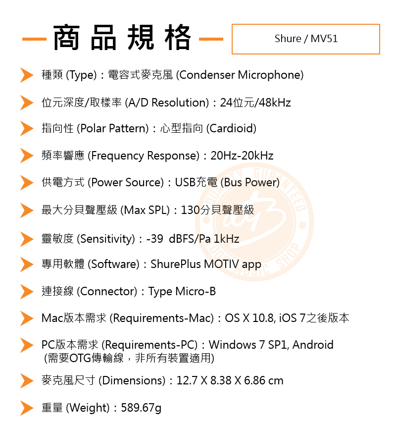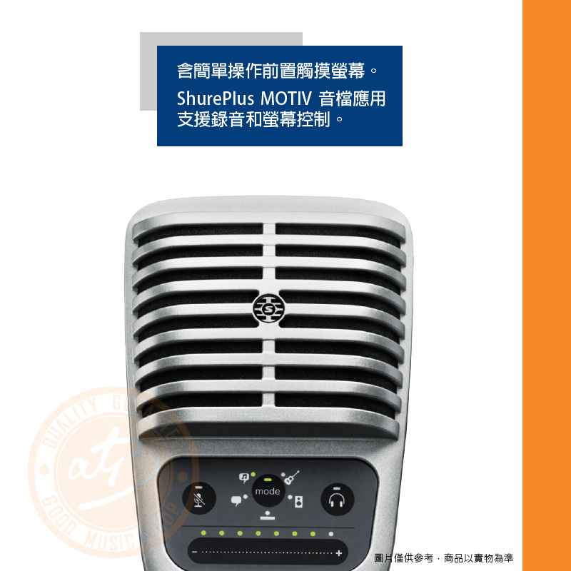 ◆音檔應用程式 ShurePlus MOTIV 支援錄音和螢幕控制。