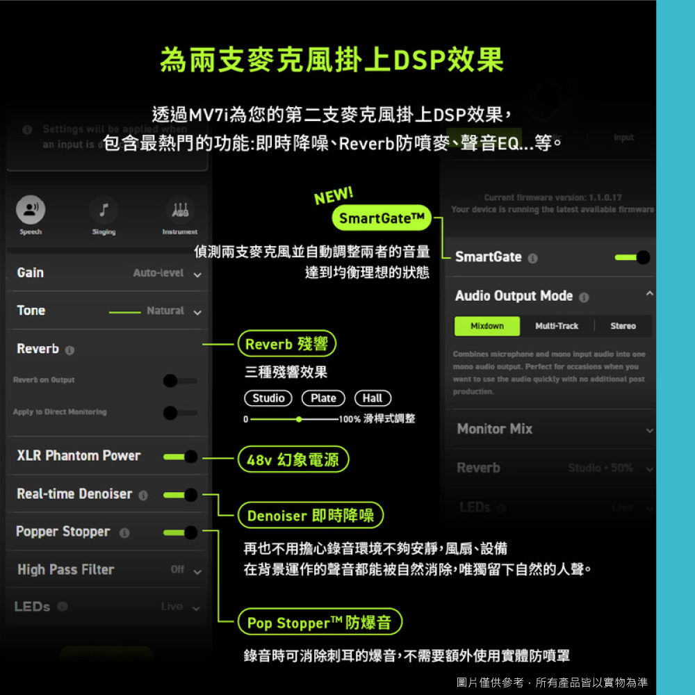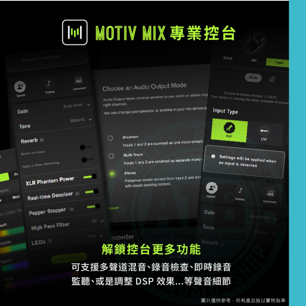 ◆ 搭配 MOTIV Mix,支援 EQ、壓縮與降噪效果。