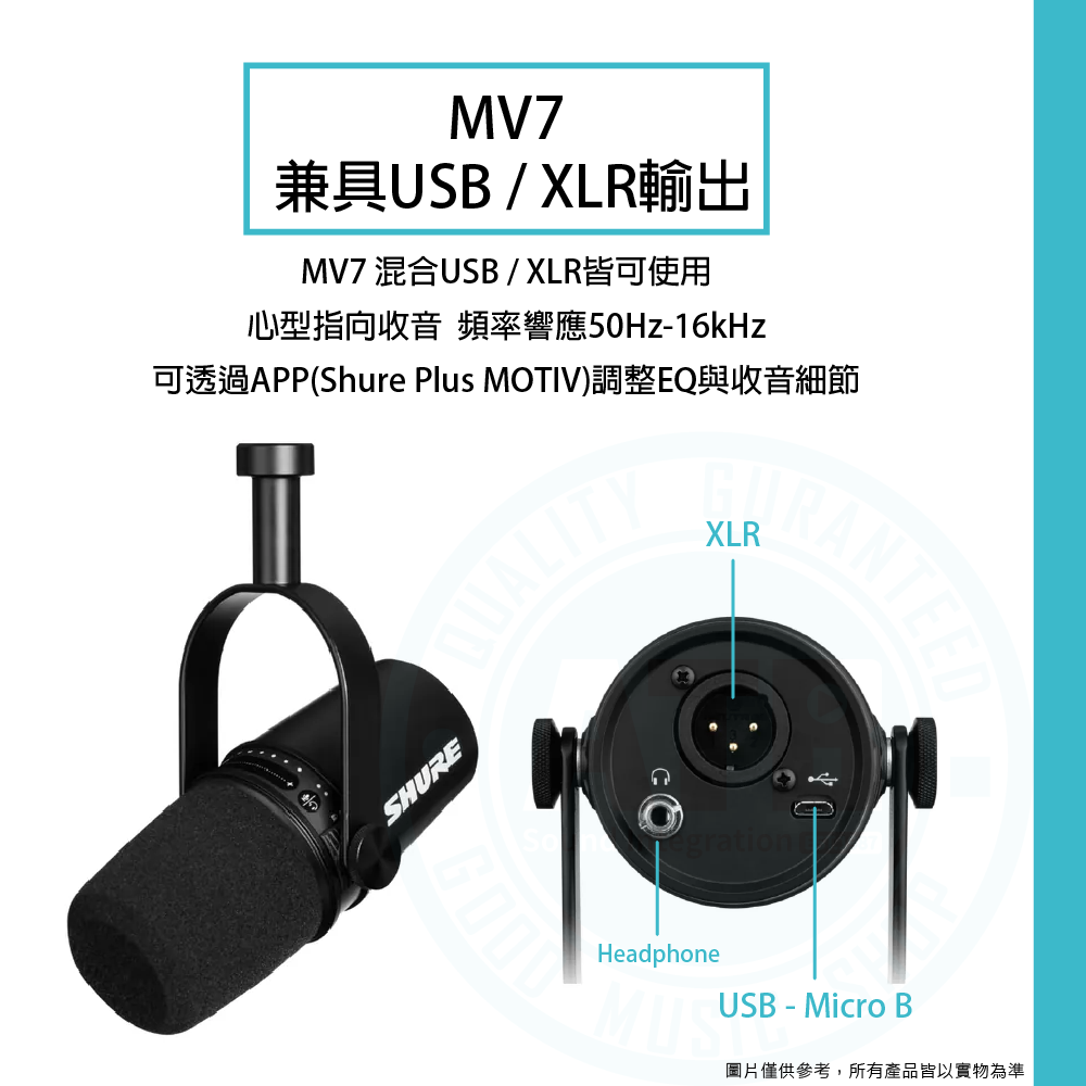 ◆ MV7兼具USB及XLR輸入 / MV7X具XLR輸出