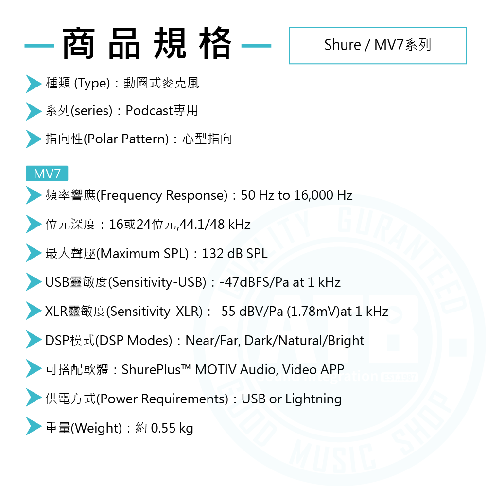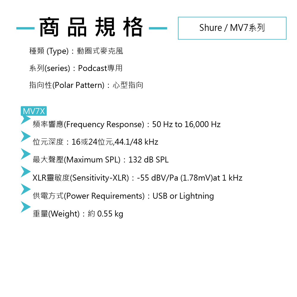 ◆ MV7系列為傳奇Shure SM7B啟發,適合 Podcast、直播