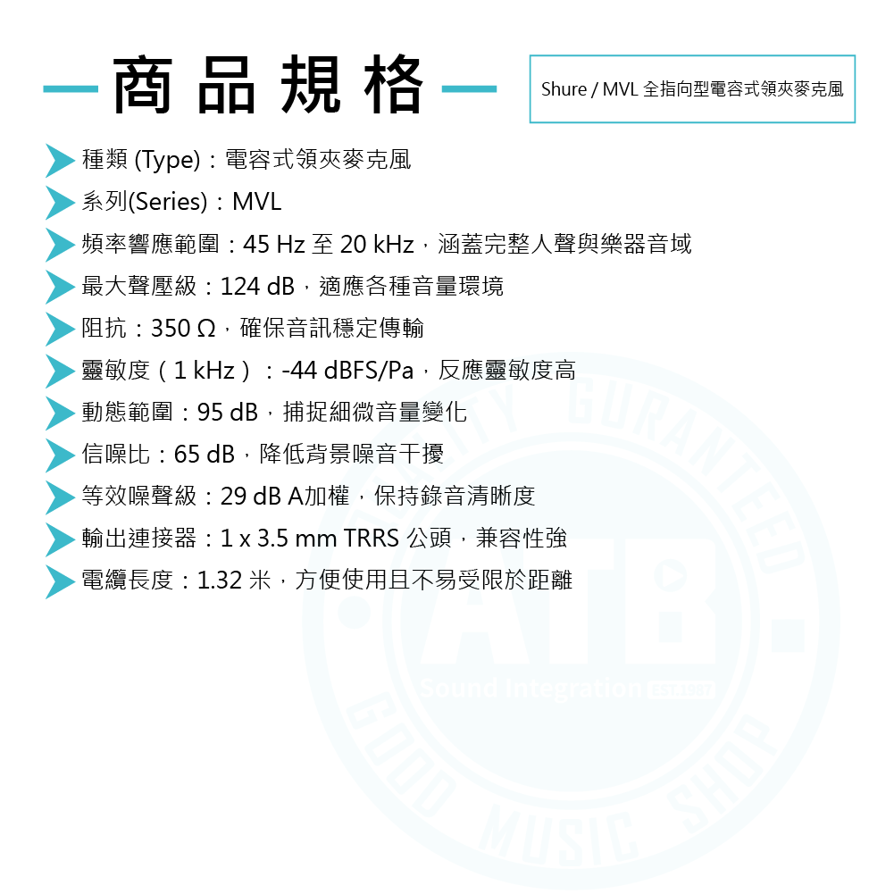 ◆ 高信噪比與寬動態範圍 提供清晰錄音品質