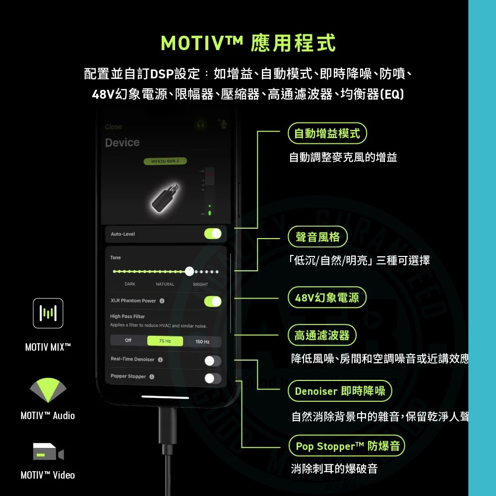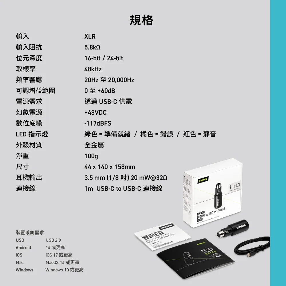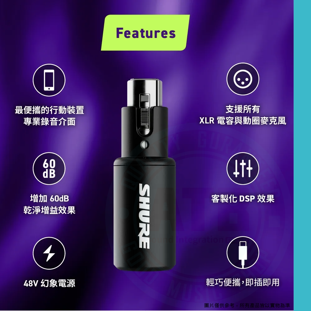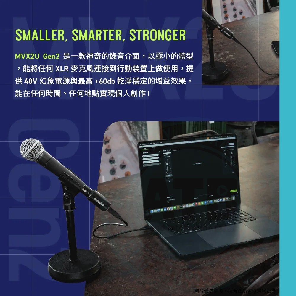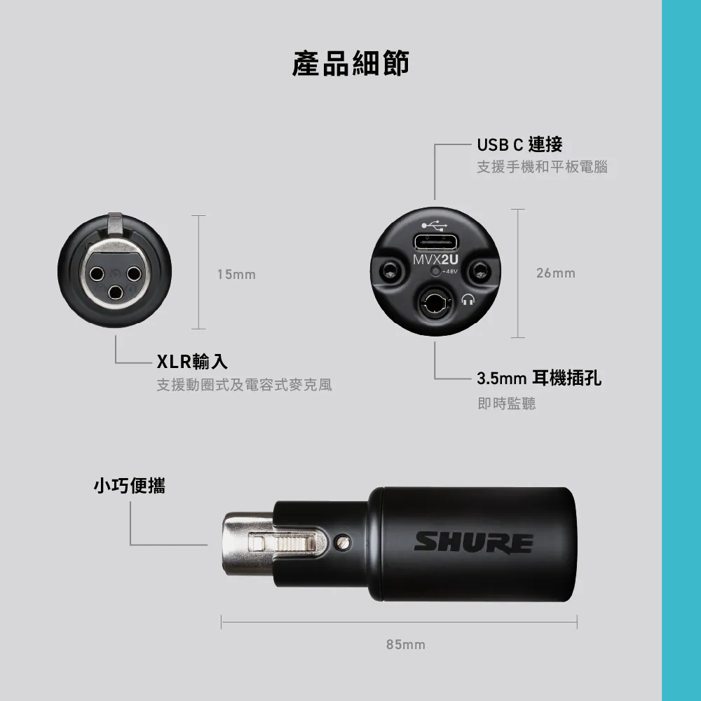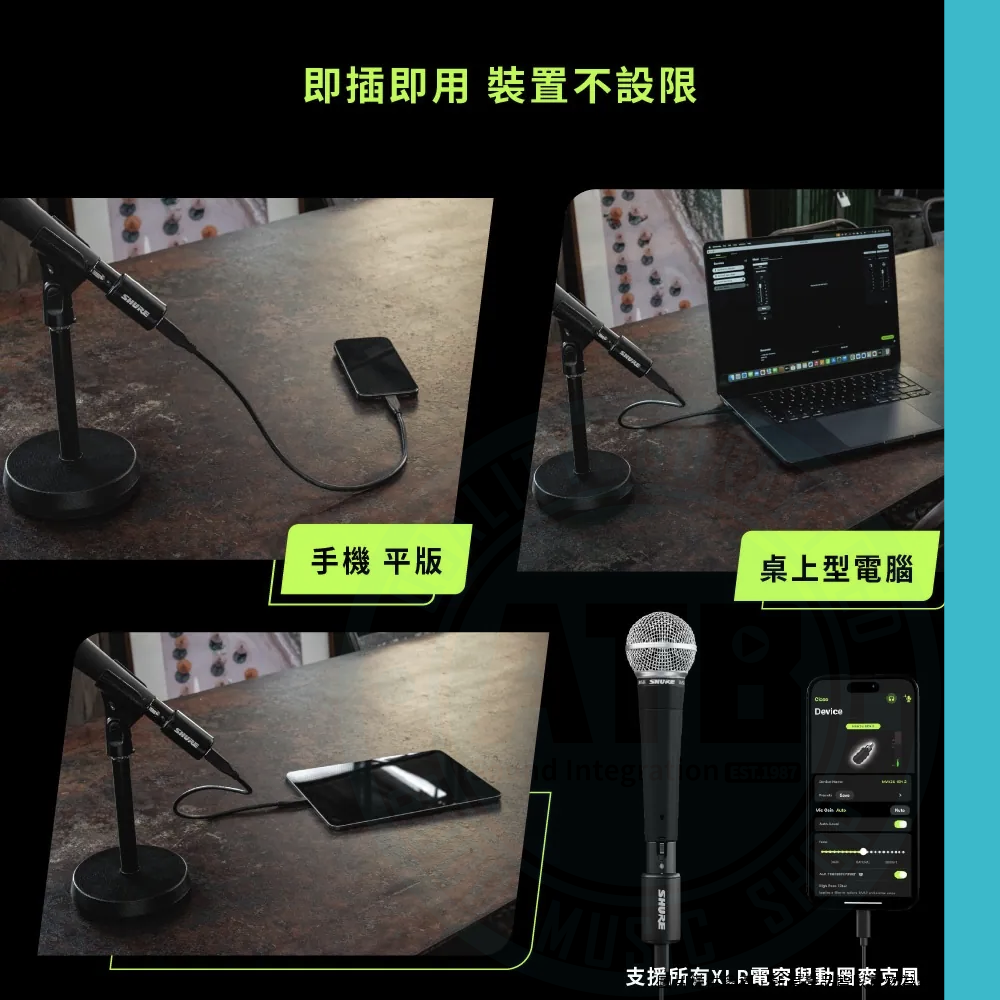 ◆ 支援所有 XLR 電容與動圈麥克風