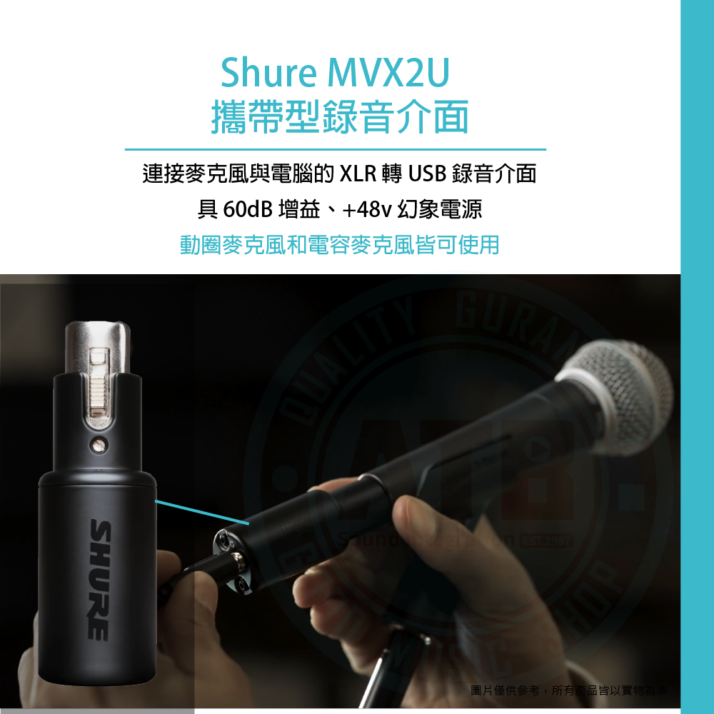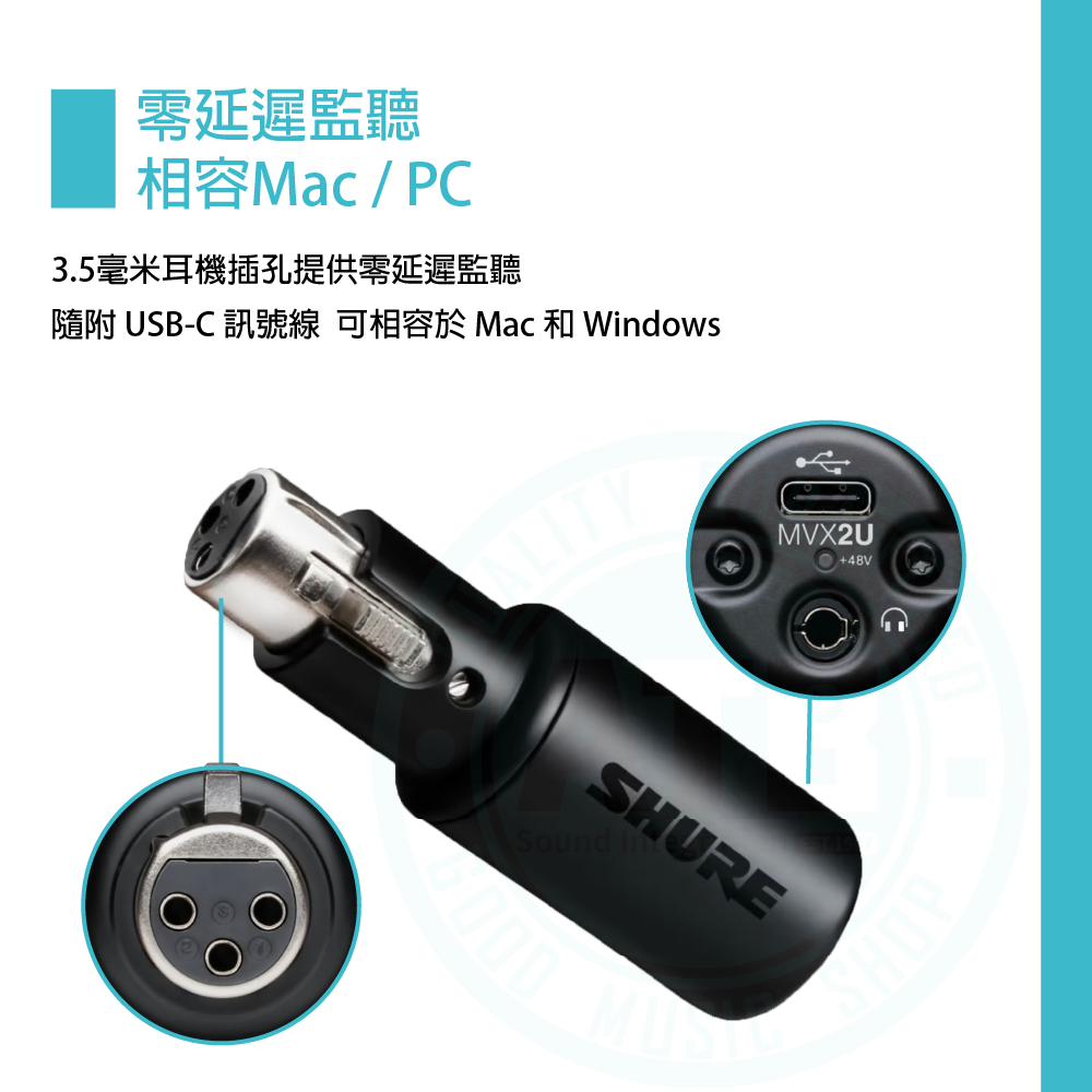 ◆ MVX2U 將XLR 麥克風 直轉 USB-C,實現即插即用