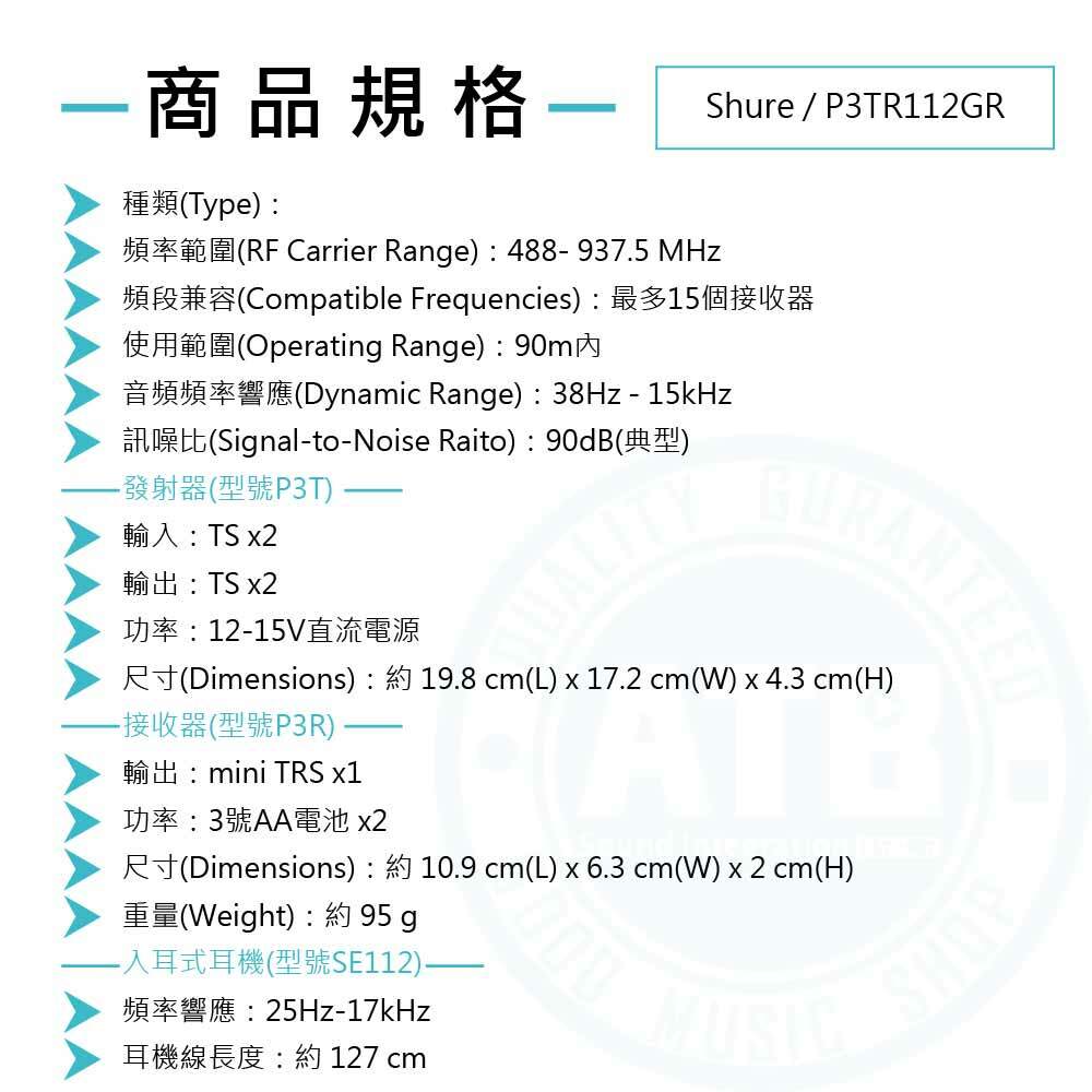 ◆ 適用舞台監聽,含無線接收器x1、無線發射器x1、SE112入耳式抗噪耳機x1