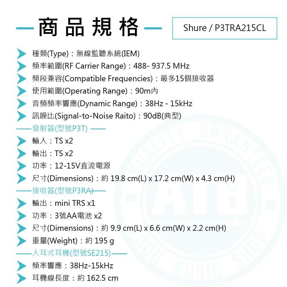 ◆ 適用舞台監聽,含無線接收器(LCD螢幕)x1、無線發射器x1、SE215入耳可拆式抗噪耳機x1