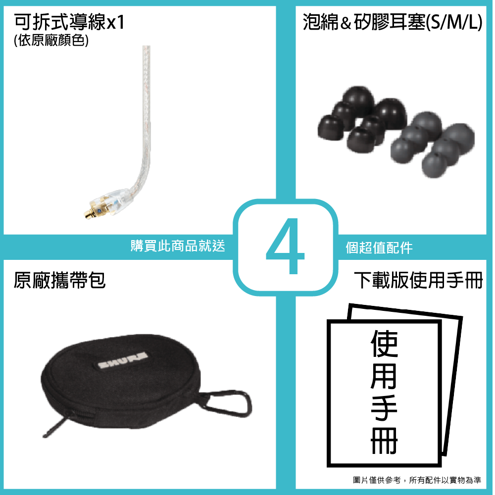 ◆ 入耳式監聽耳機(17 ohms),有效降噪37dB,適用於舞台監聽、練團使用