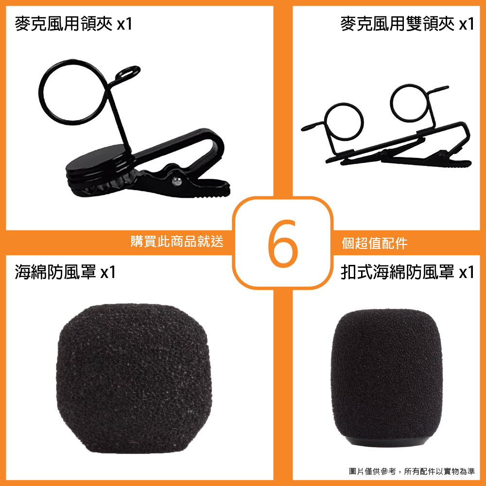 ◆ 附2種領夾、2種麥克風防風罩