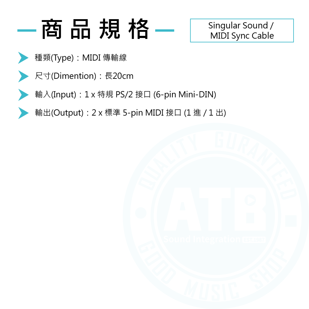 ◆ BeatBuddy 專用MIDI 傳輸線