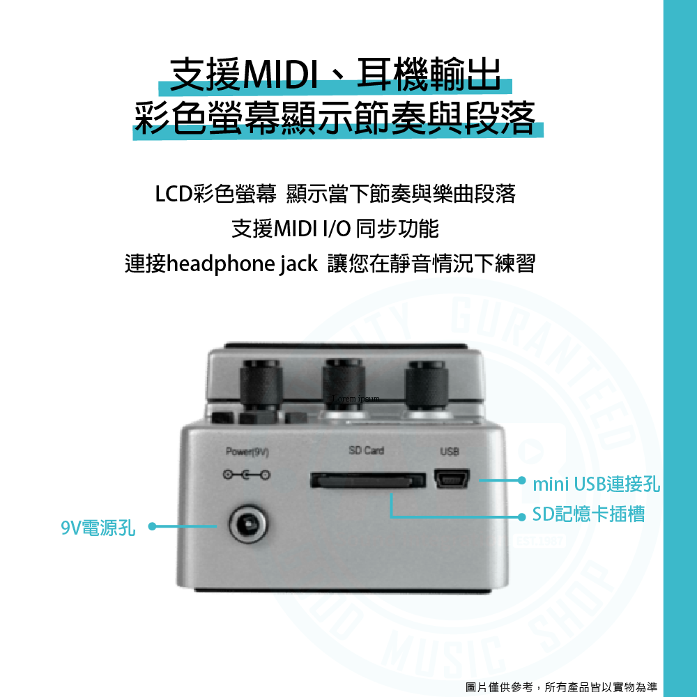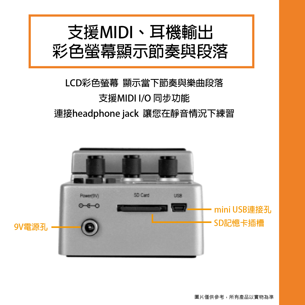 ◆ 支援MIDI、耳機輸出,彩色螢幕顯示節奏與段落