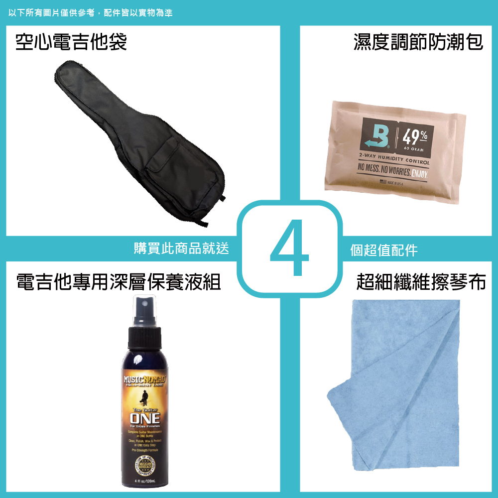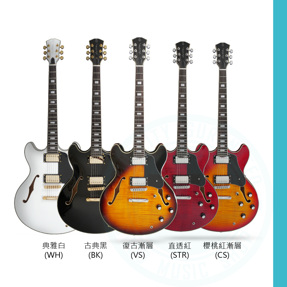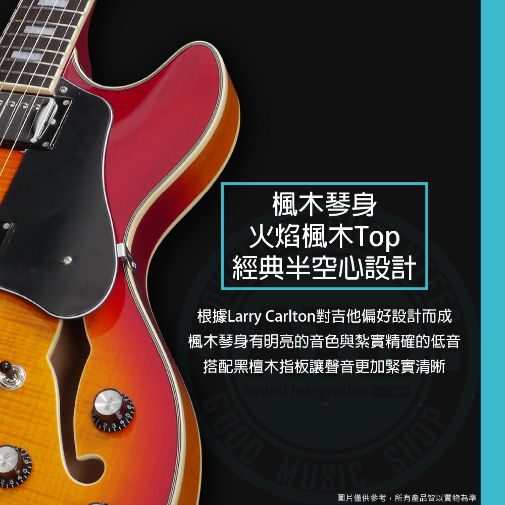 ◆ 楓木琴身、火焰楓木Top,搭配經典半空心設計,音色明亮且低音紮實準確