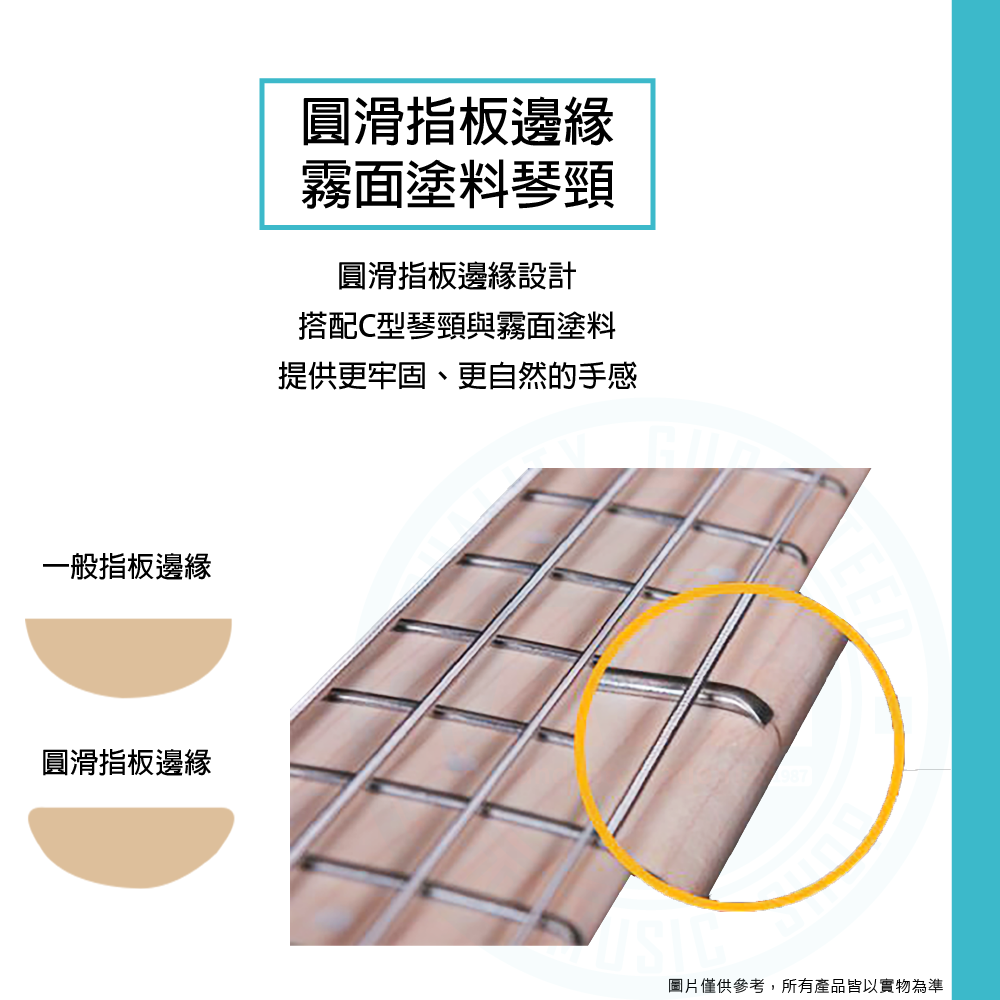 ◆ 圓滑指板邊緣與霧面琴頸,手感自然舒適
