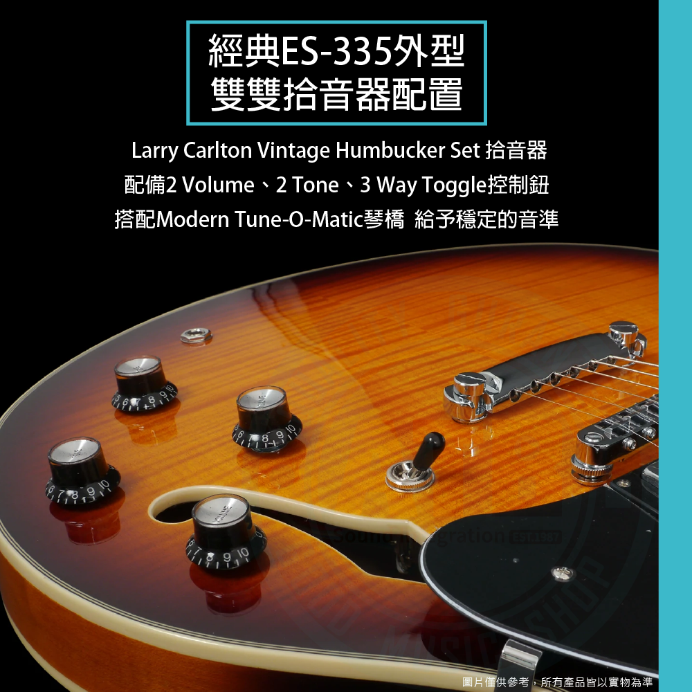◆ 經典ES-335外型,雙雙拾音器配置、銀色Hardwrae