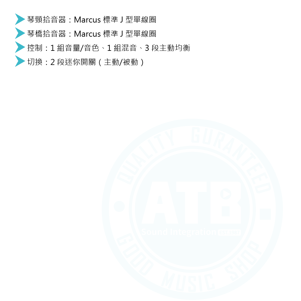 ◆ Marcus Standard J 型拾音器,適應多種音樂風格