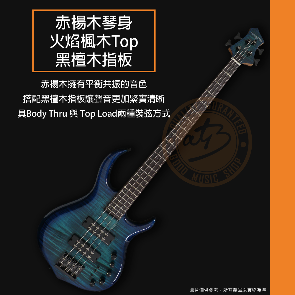 ◆ 赤楊木琴身,火焰楓木Top,黑檀木指板
