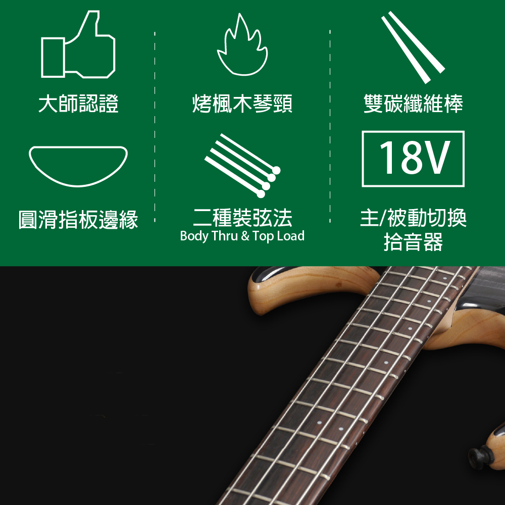 ◆琴頸-雙碳纖維增強棒設計,穩定5弦BASS的高弦張力