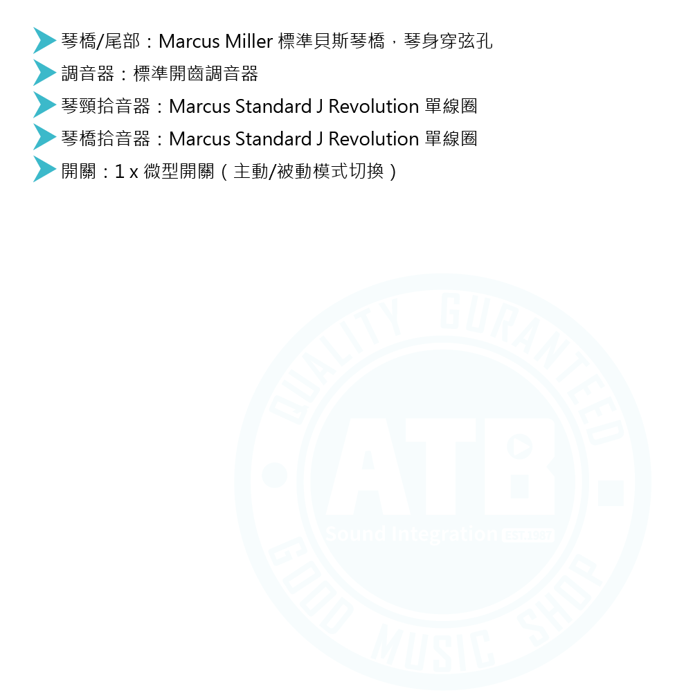 ◆ 搭載Marcus Standard J Revolution 拾音器