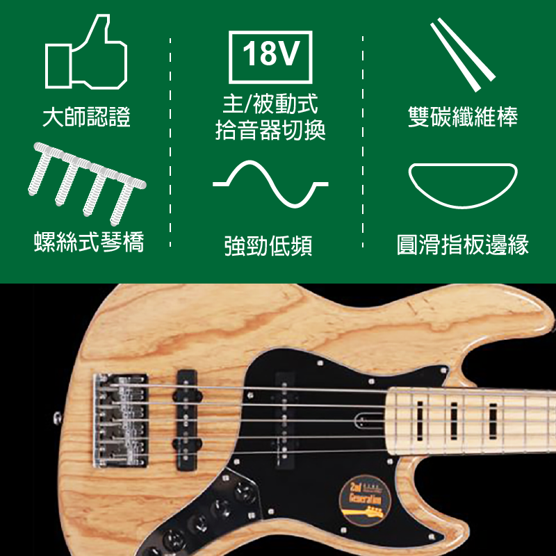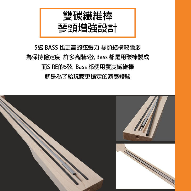 ◆琴頸-雙碳纖維增強棒設計,穩定5弦BASS的高弦張力