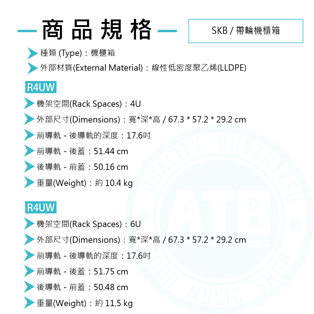 ◆ 採用聚乙烯 (LLDPE) 滾塑成型,可達到最大強度和抗衝擊性