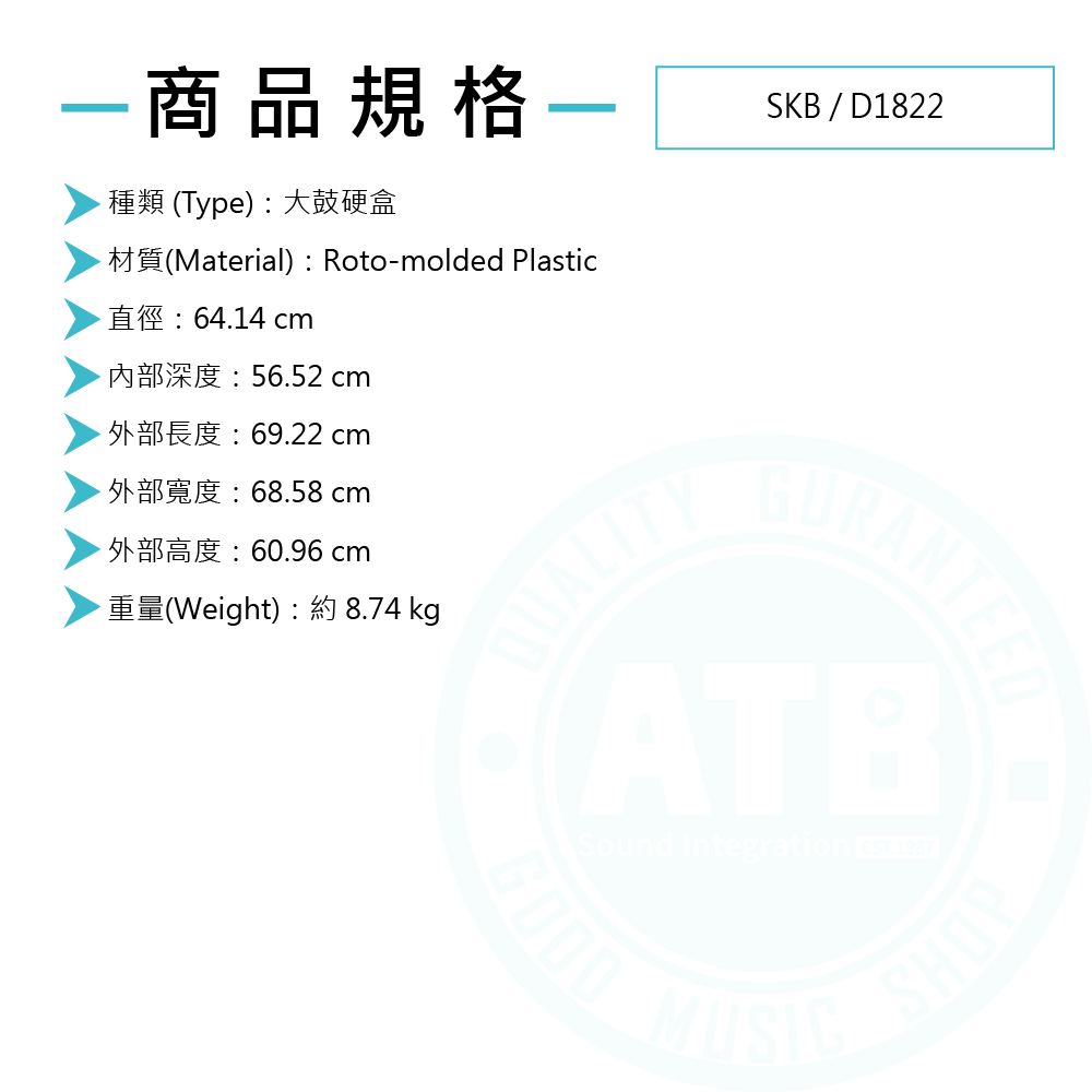 ◆ 大鼓專用,18 x 22吋(內部深度56.52cm)