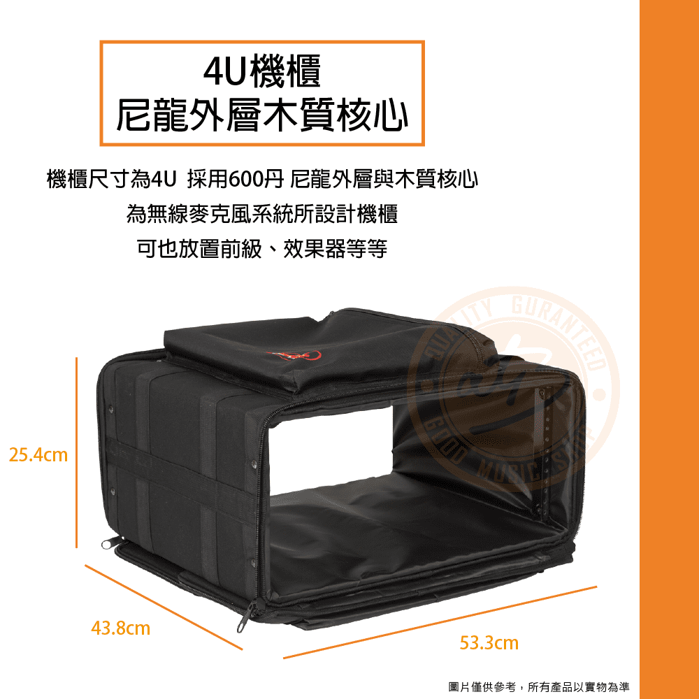 ◆ 機櫃尺寸為4U,採用600丹 尼龍外層與木質核心
