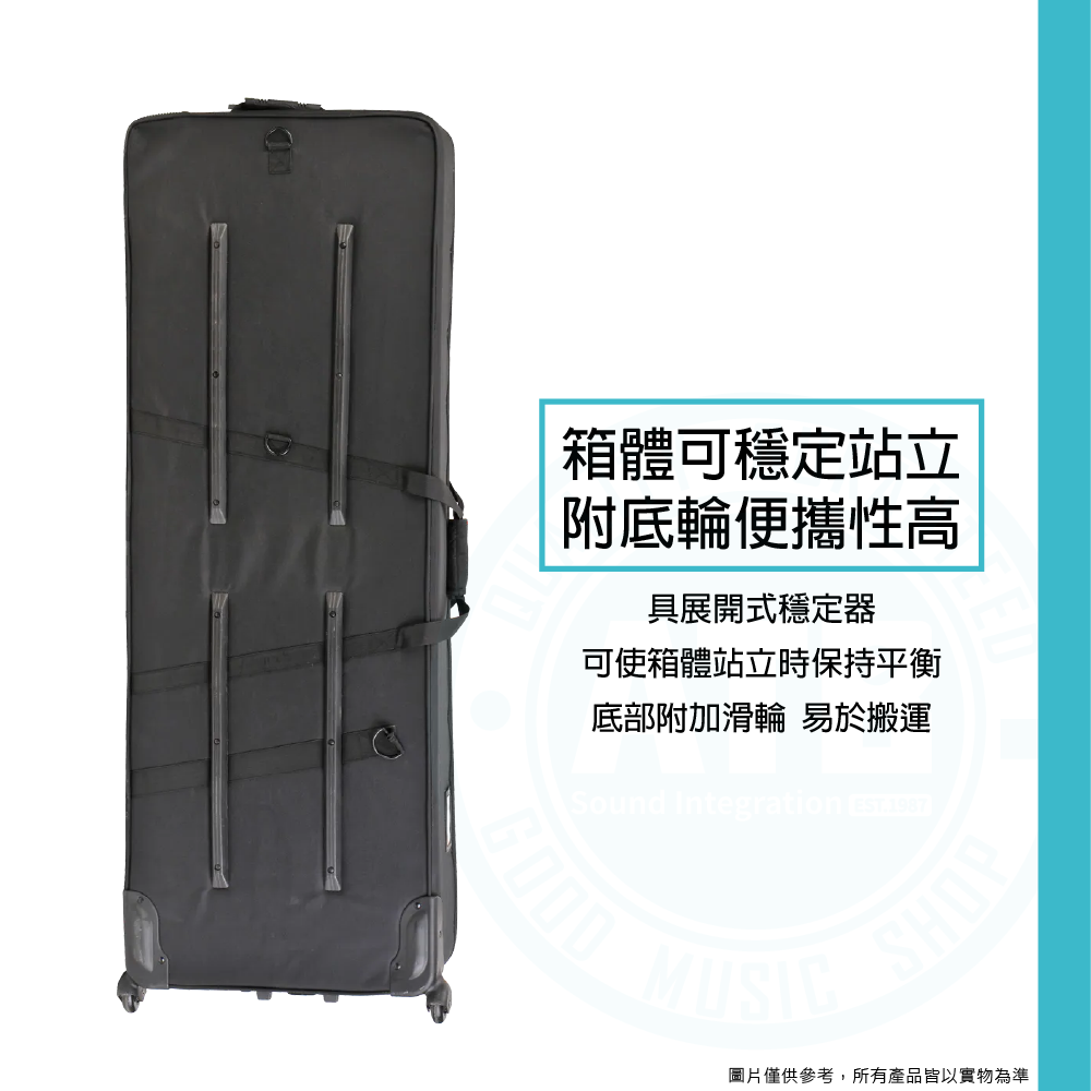 ◆ 箱體具展開式穩定器可站立,附底輪易於搬運