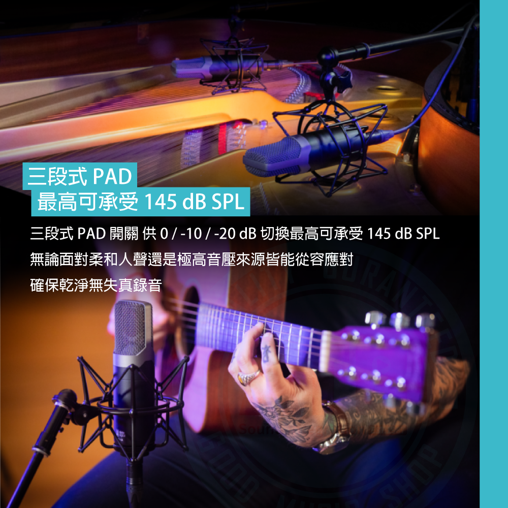 ◆ 高音壓承受力,3 段 Pad 開關可處理高達 145dB