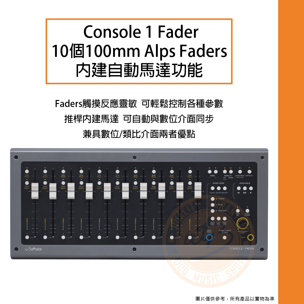 ◆ Console 1 Fader:10個100mm Alps Faders,內建自動馬達功能,可自動與數位介面同步