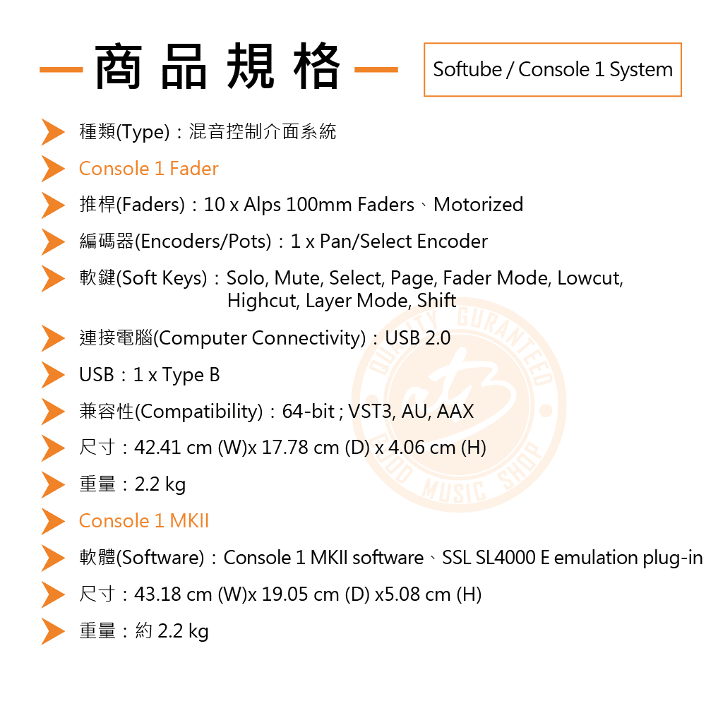 ◆ 混音控制系統組,包含Console 1 MKII、Console 1 Fader