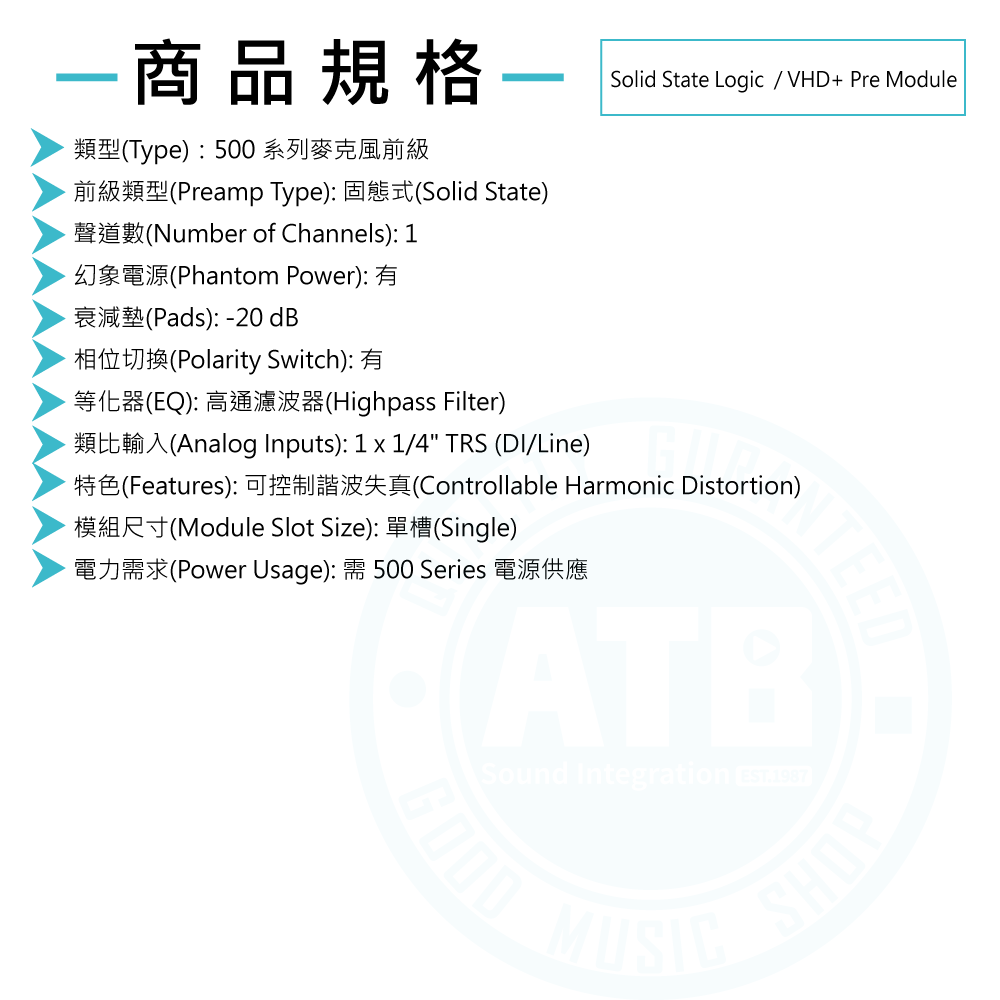 #SSL / B-DYN / E-DYN / E-EQ / G-Comp(Bus Compressor Module) / VHD+ Pre / UV EQ / Six CH