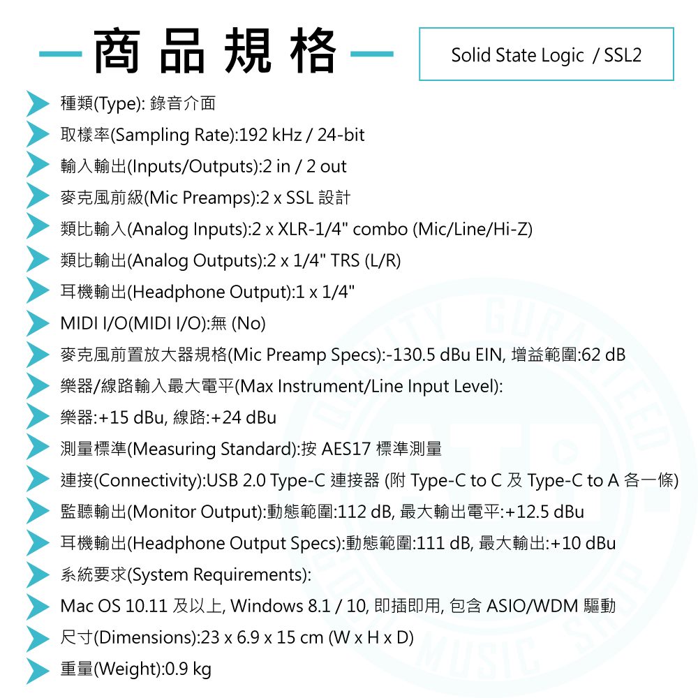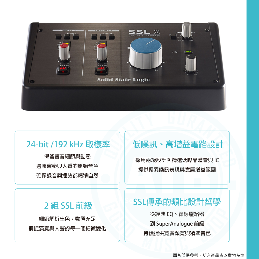 ◆ SSL 設計麥克風前級 x2,低噪訊高解析的專業錄音品質