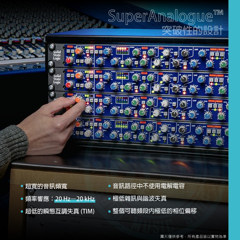◆ 雙前級切換 SuperAnalogue / VHD 供純淨或諧波音色