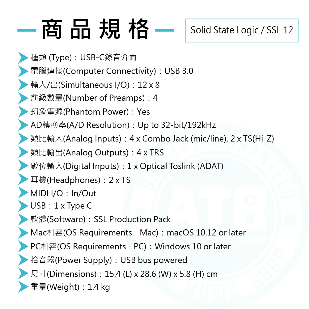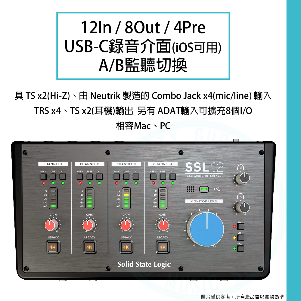 ◆ 12In / 8Out / 4Pre,USB-C錄音介面(iOS可用)