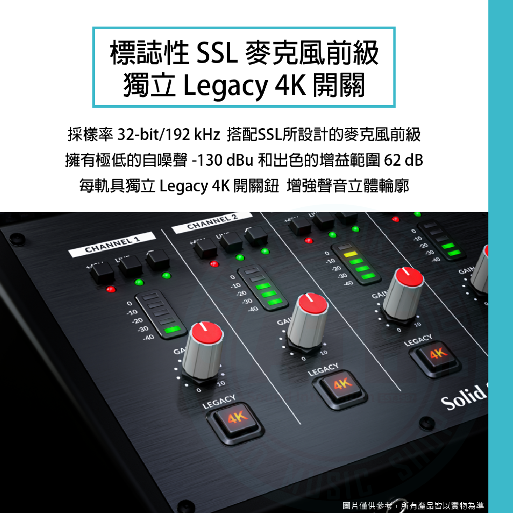 ◆ 搭載具標誌性 SSL 麥克風前級、獨立 Legacy 4K 音色模擬
