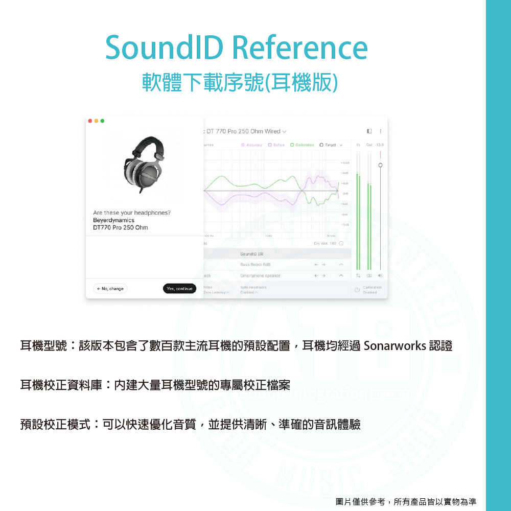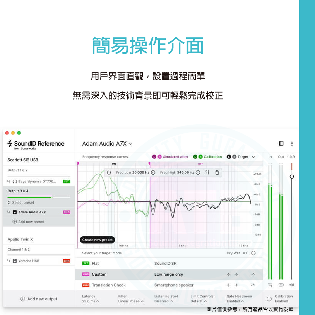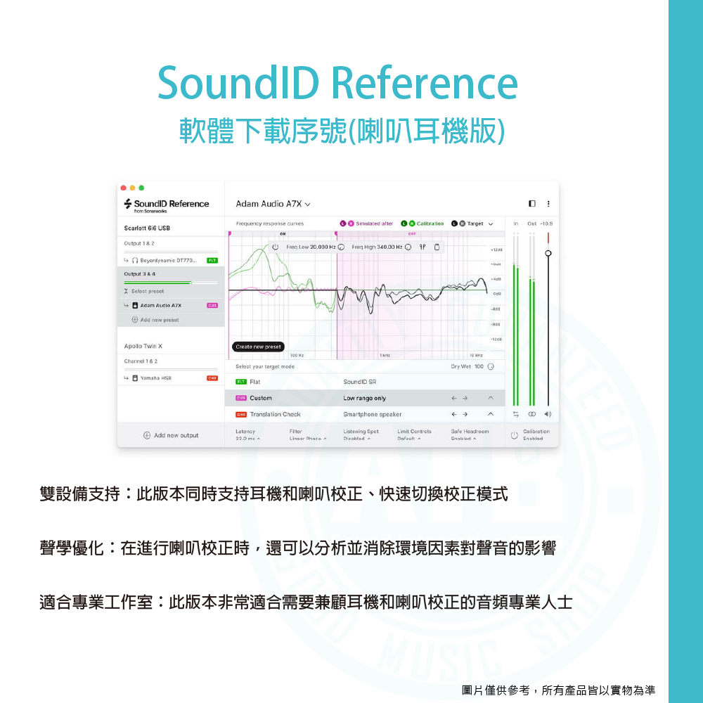 ◆ 精確頻率校正 提供精確的耳機和喇叭頻率響應調整