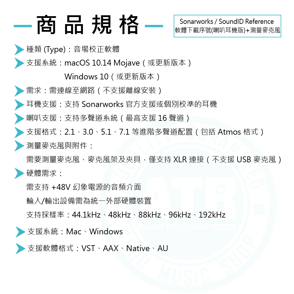 ◆支援 Mac、Windows 系統;支援 VST、AAX、Native、AU 軟體