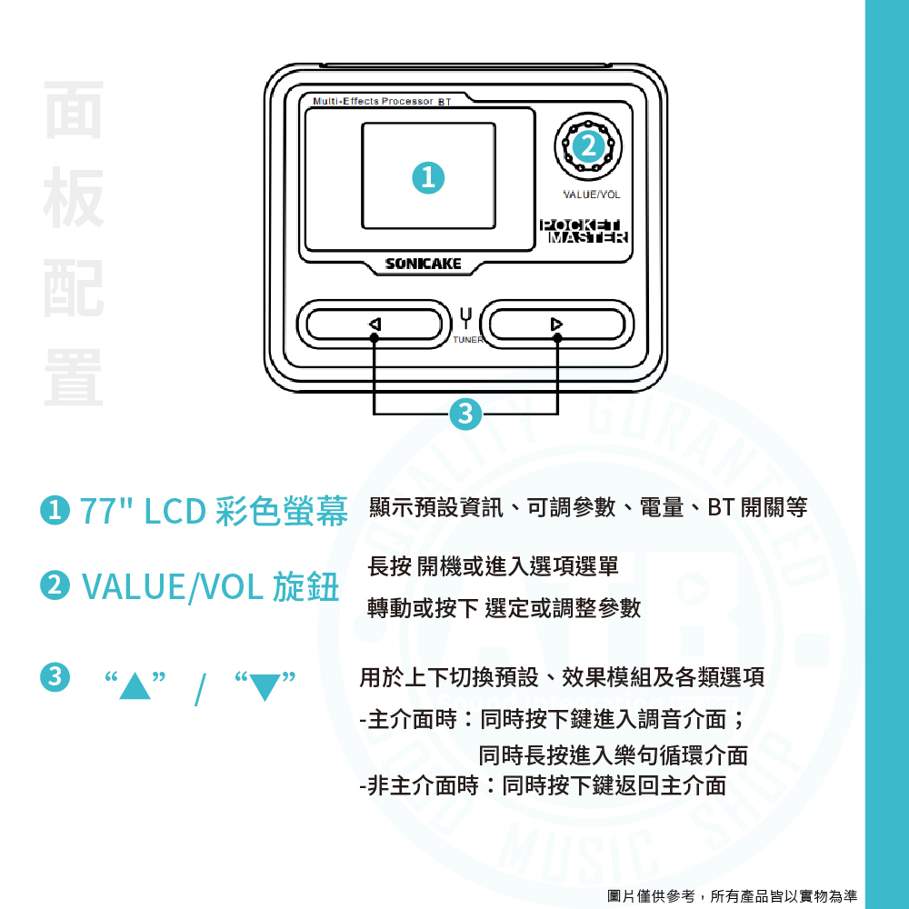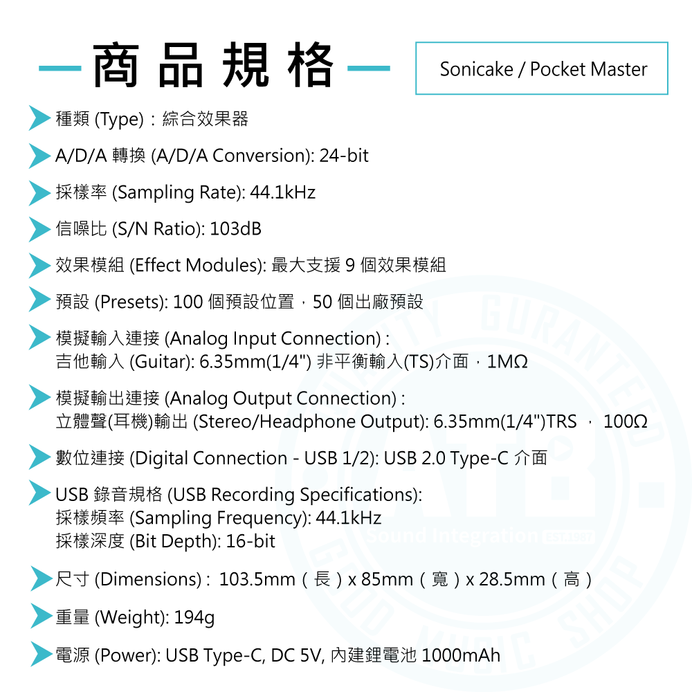 ◆100 多種效果,20 種傳奇音箱模擬、24 位元 44.1kHz 訊號處理