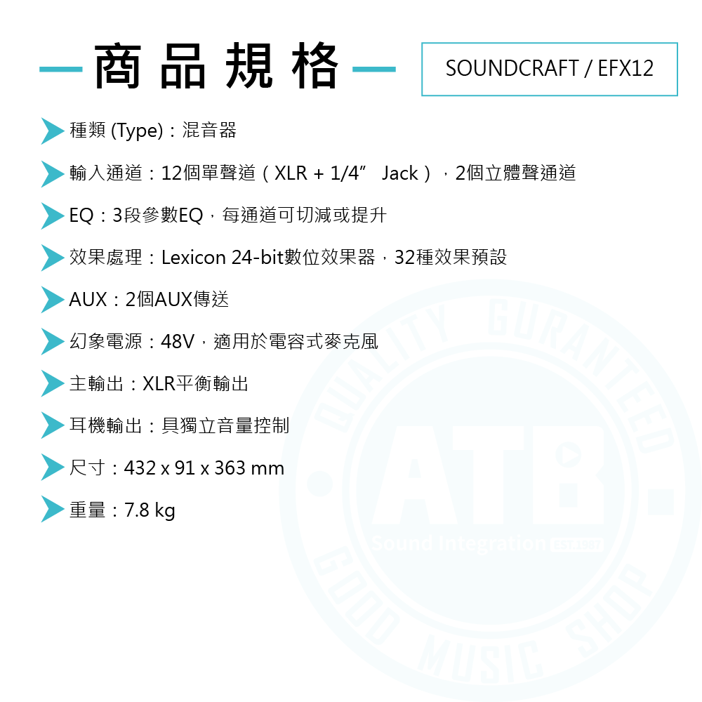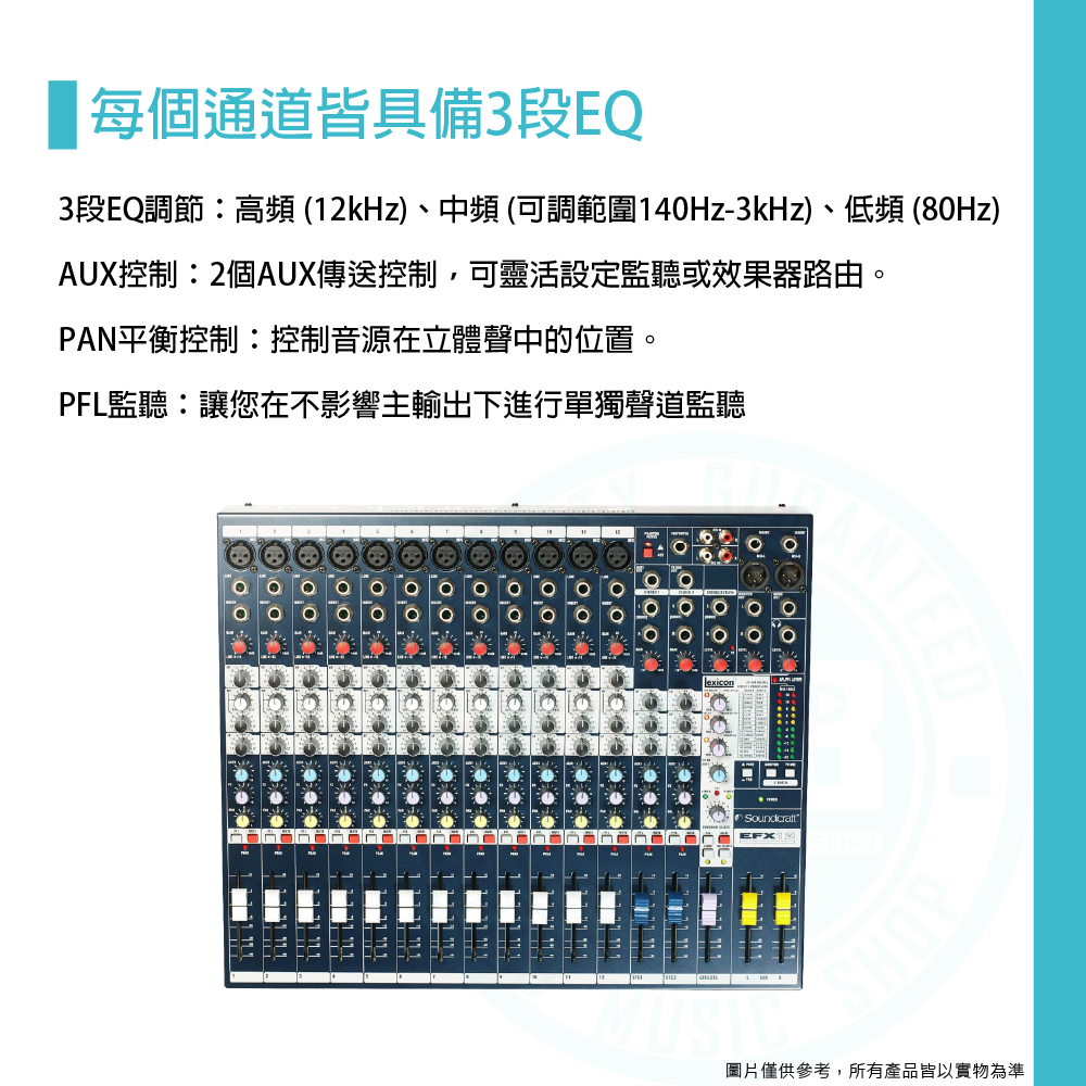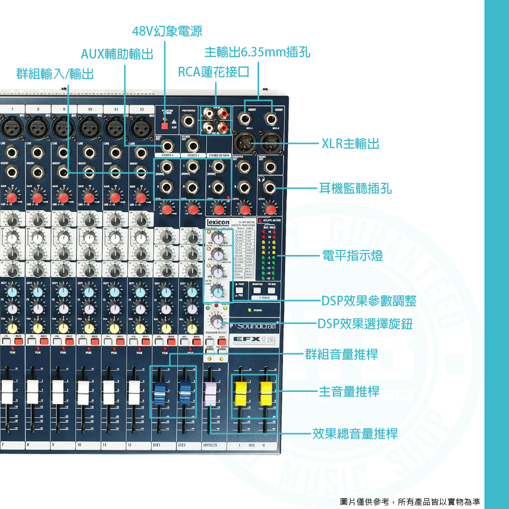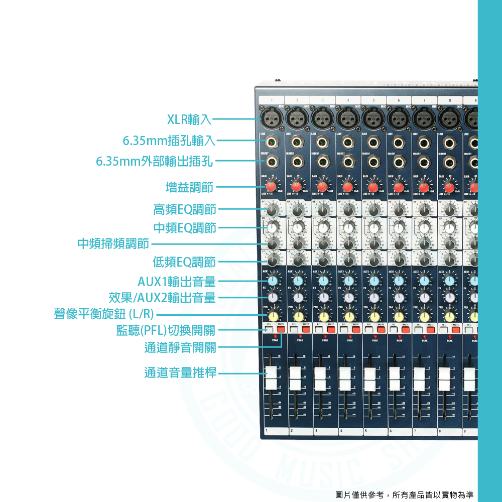 ◆提供2組AUX傳送、XLR平衡主輸出、耳機監聽輸出與群組輸出